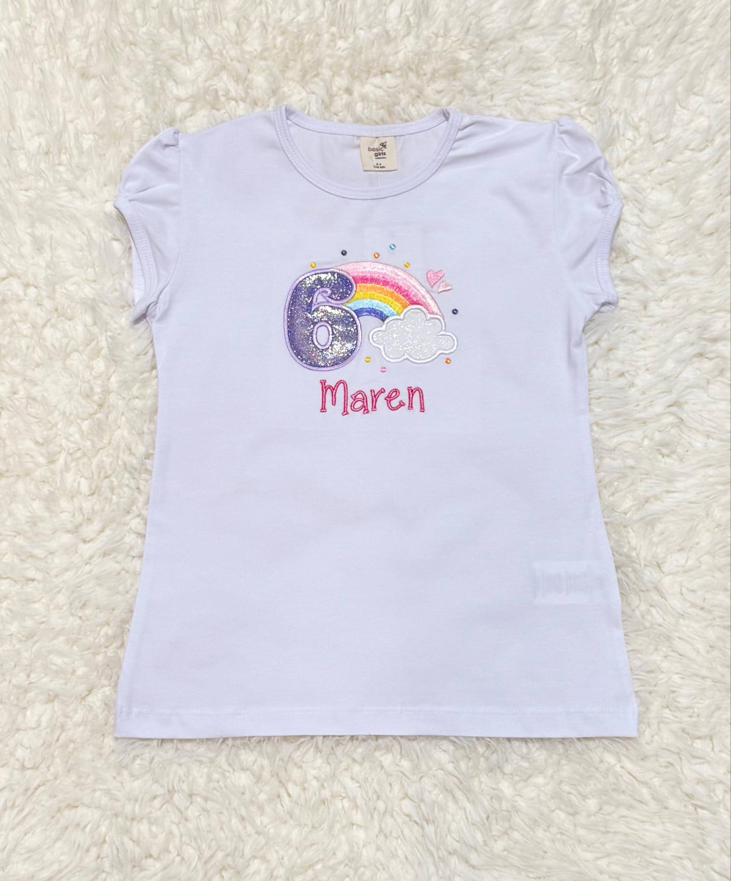 Cute Rainbow Birthday Number 6 SIX machine embroidery applique designs size 4, 5 and 6.5 inches, rainbow in clouds kids party number 6
