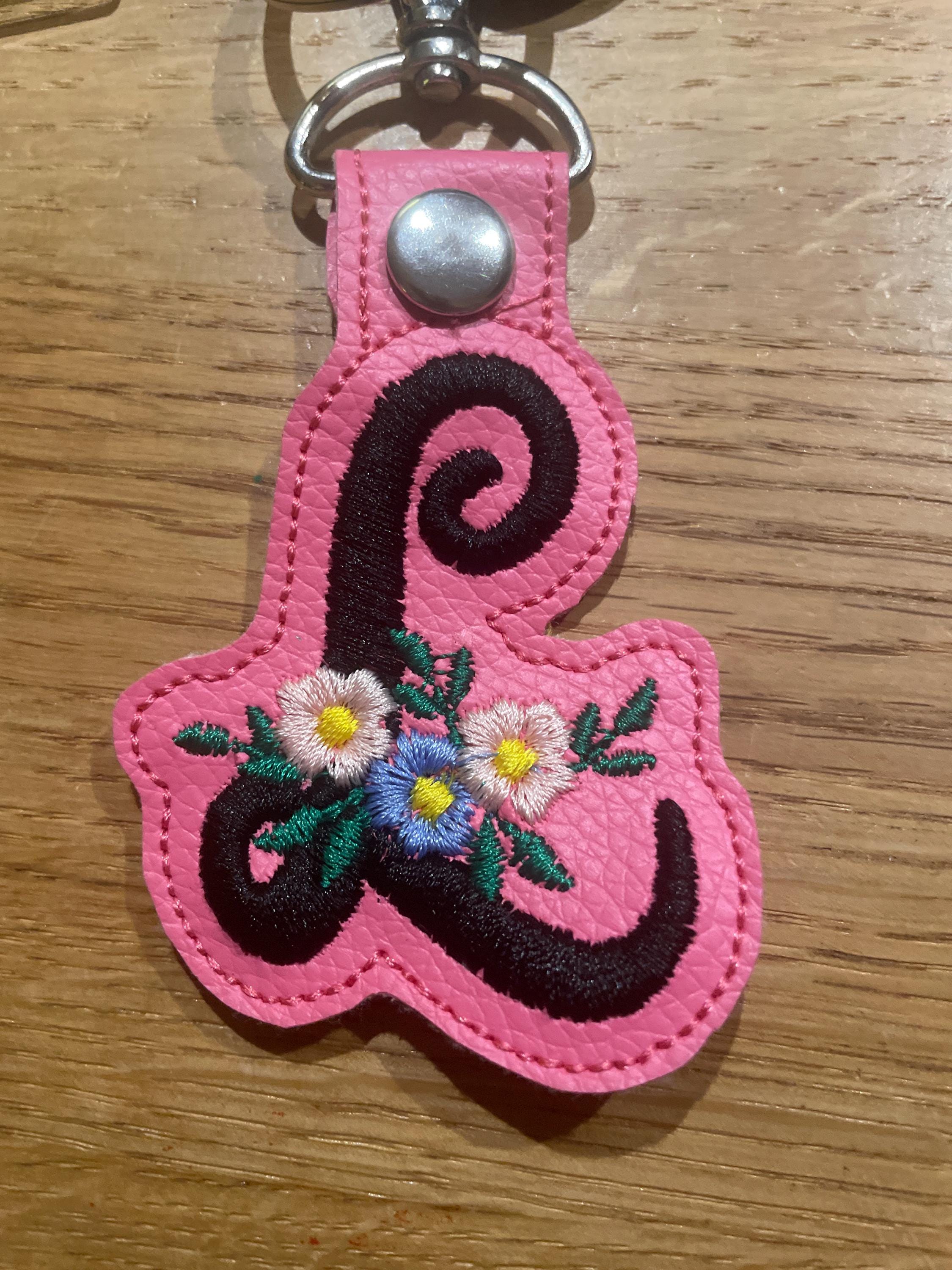Key fob snap tab Meadow Monogram alphabet initials script letters from A up to Z in the hoop ITH keychain bag tag machine embroidery designs