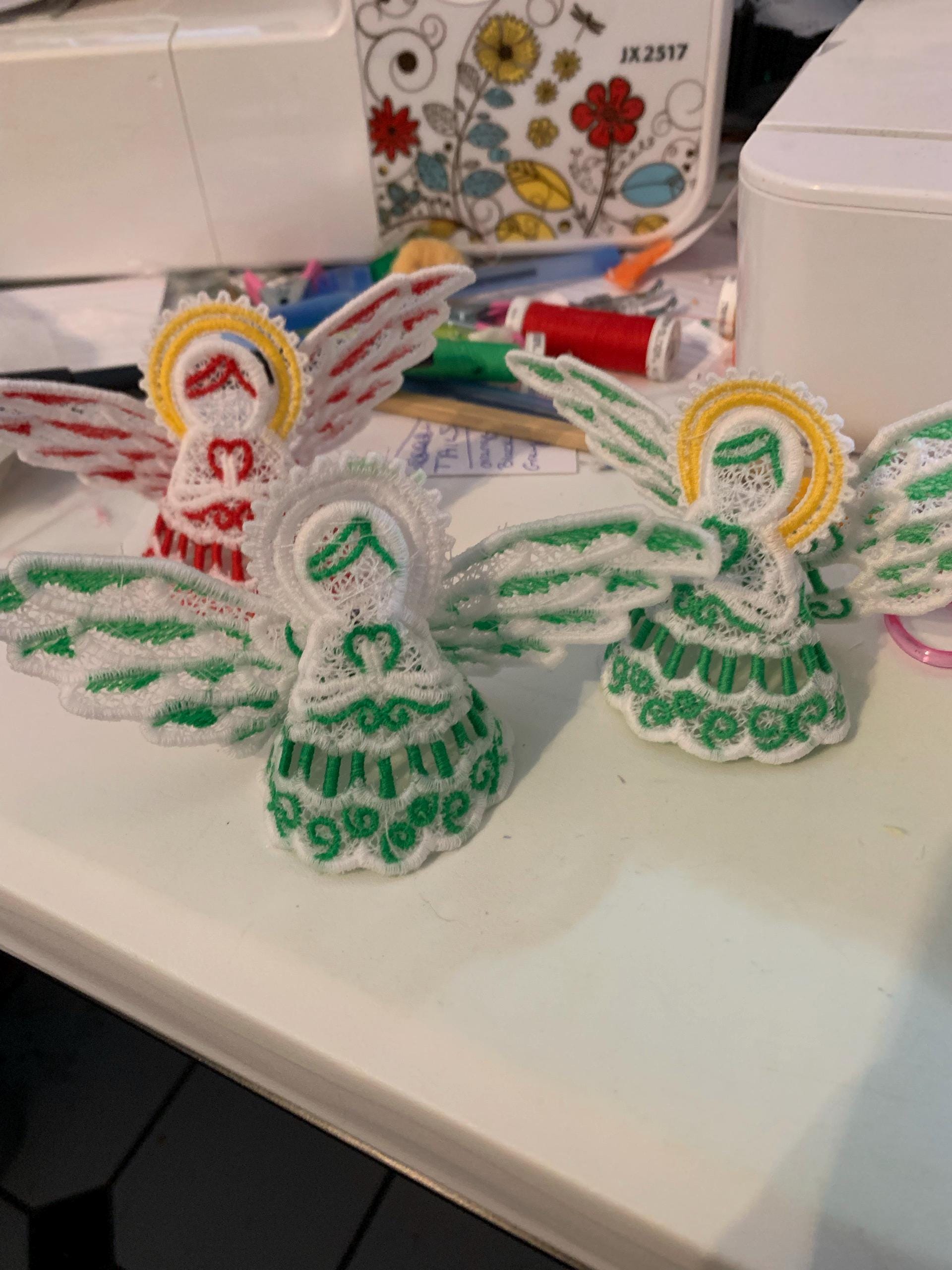 This makes a beautiful FSL angel! The stitching takes a while, but it is so worth it! These will make lovely gifts!