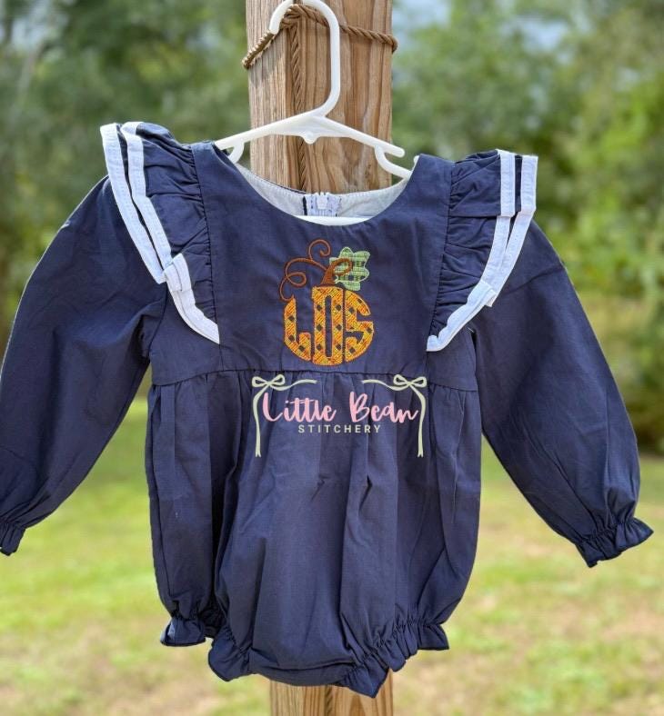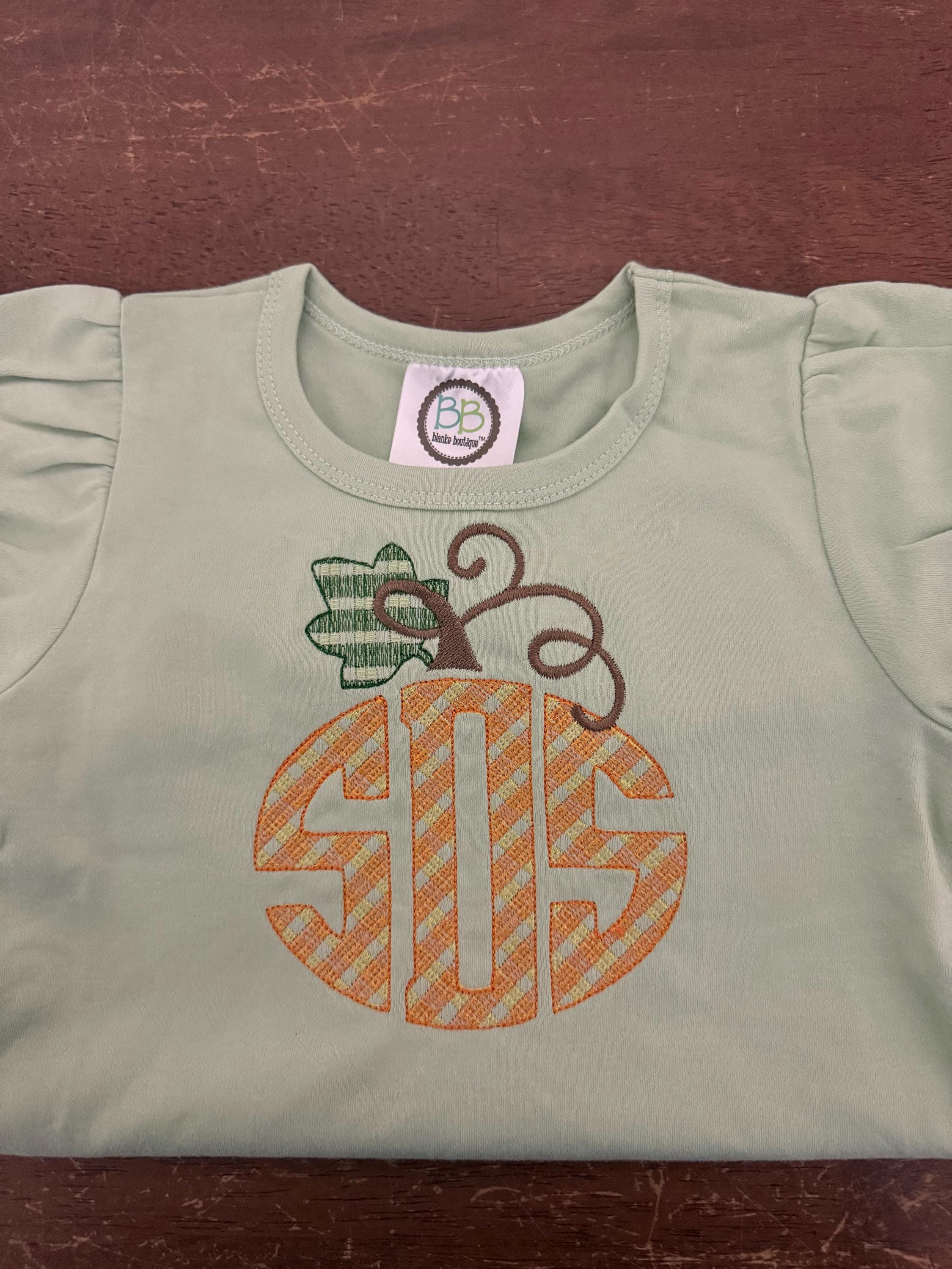 The plaid effect is a part of the design. The monogram composes an oval pumpkin shape.
