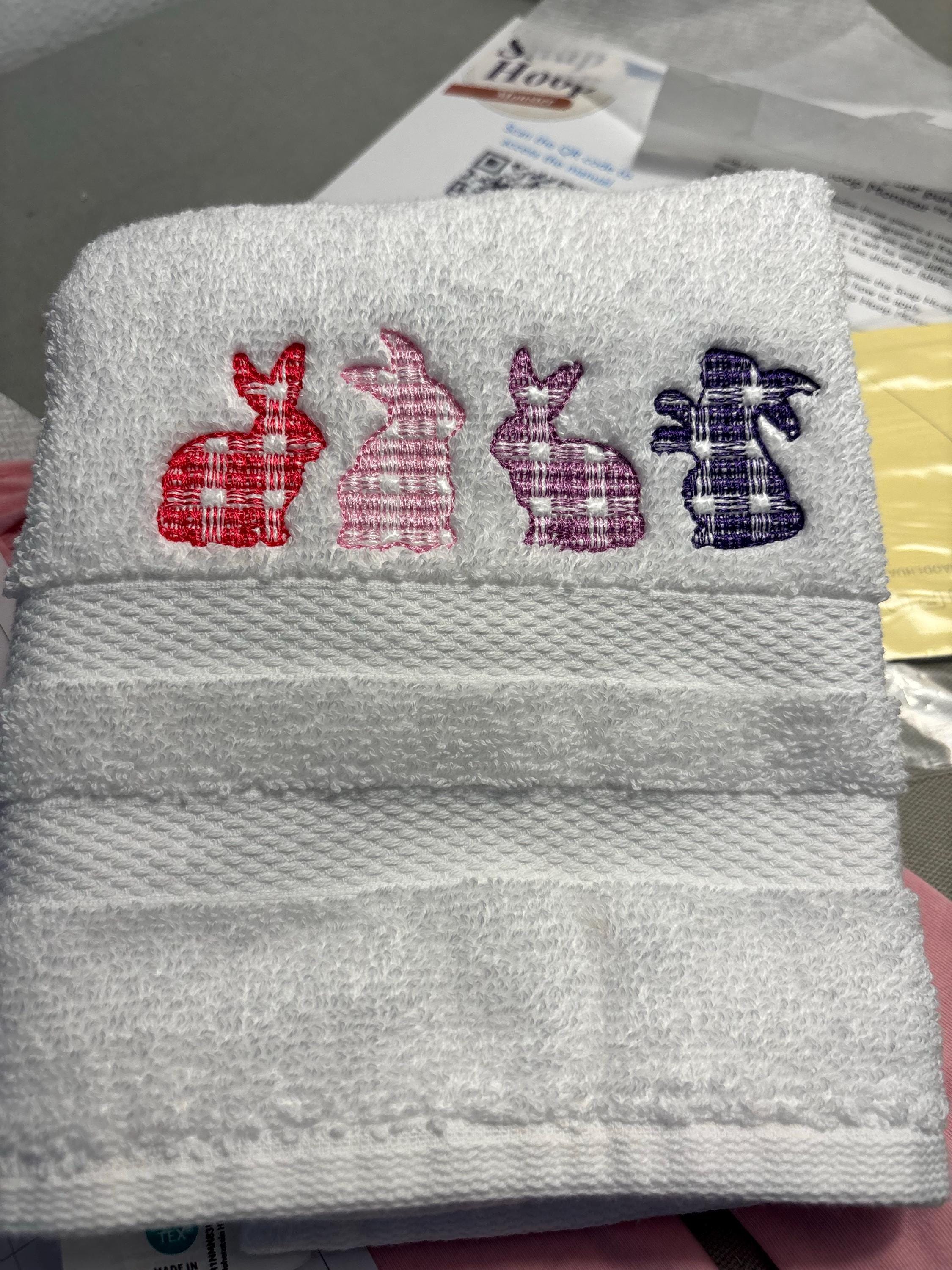 Gingham tartan checkered plaid Easter Bunny 4 four Easter bunnies in a row light sketch stitch outline Machine embroidery designs many sizes