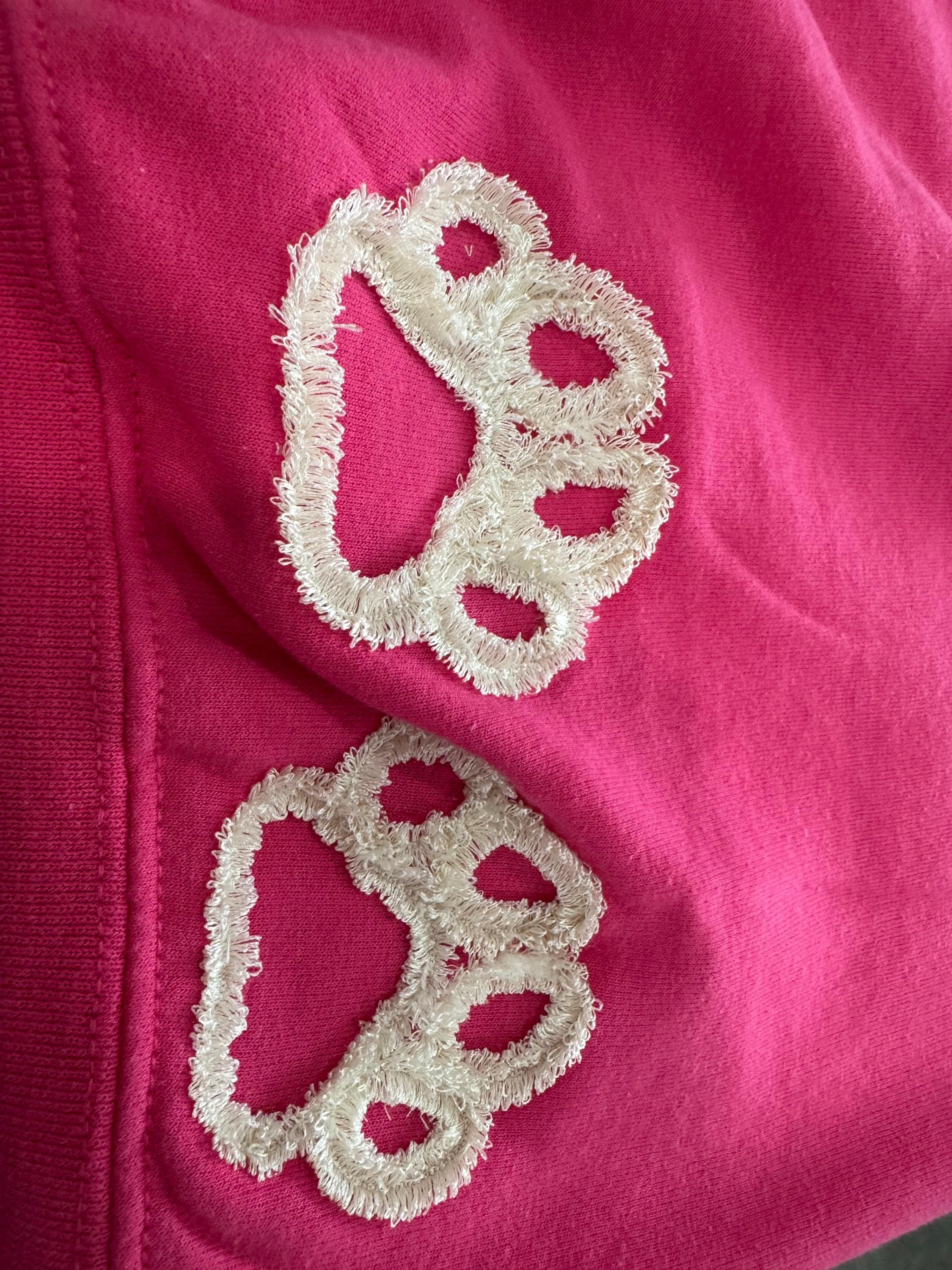 Don't be afraid of it all coming out of the project if you cut the bobbin thread. There is a little secret - the design has a tack seam holding the fringe in place. It's absolutely 100% safe to wash and tear-resistant.