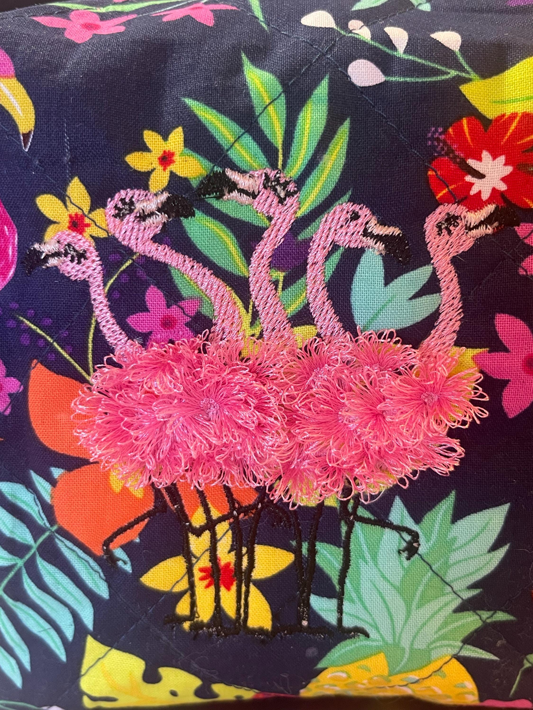 5 Fringed fluffy chenille Flamingos, flock of 5 flamingos machine embroidery designs flamingo for hoop 4x4 5x7, 6x10 fringe fur flamingo