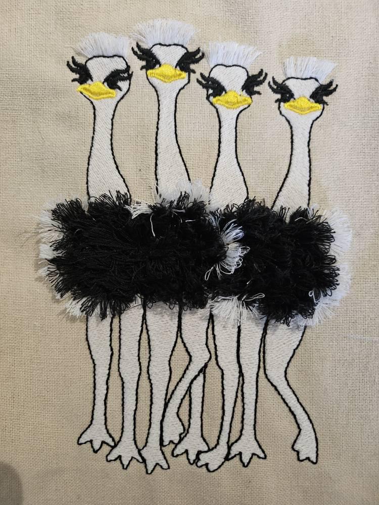 Fringed fluffy group of Ostriches flock of Ostriches machine embroidery designs for hoop 5x7 6x10 awesome fringe Ostrich bird in the hoop ITH