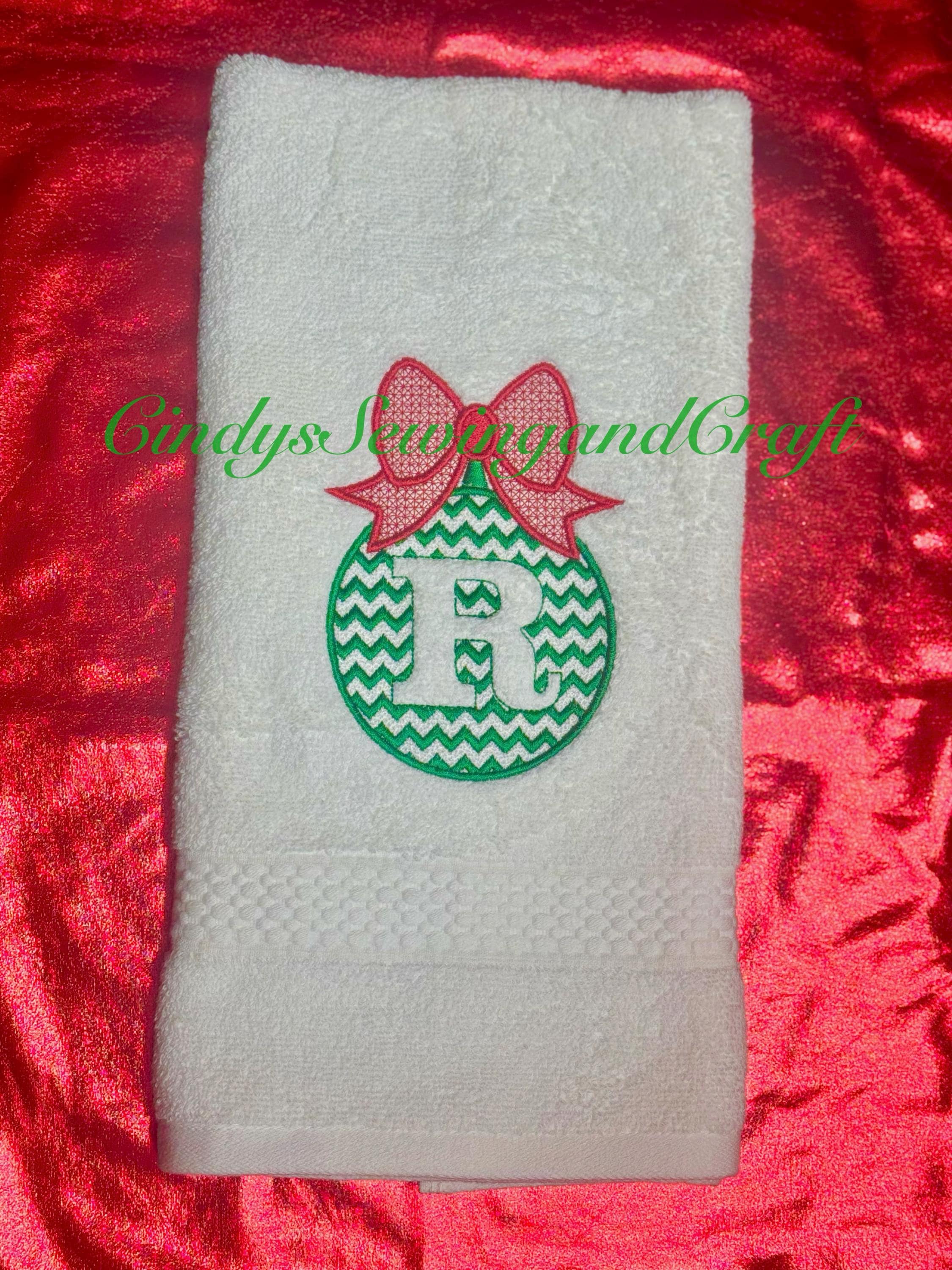 Christmas tree ornament bauble ball chevron zig-zag terry towel embossed monogram letters A-Z machine embroidery designs for hoop 4x4, 5x7