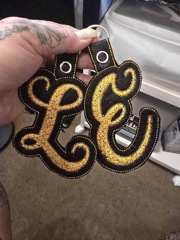 Big faux chenille initial Monogram A-Z key fob snap tab in the hoop ITH keyfob bag tag keychain machine embroidery designs for hoop 5x7