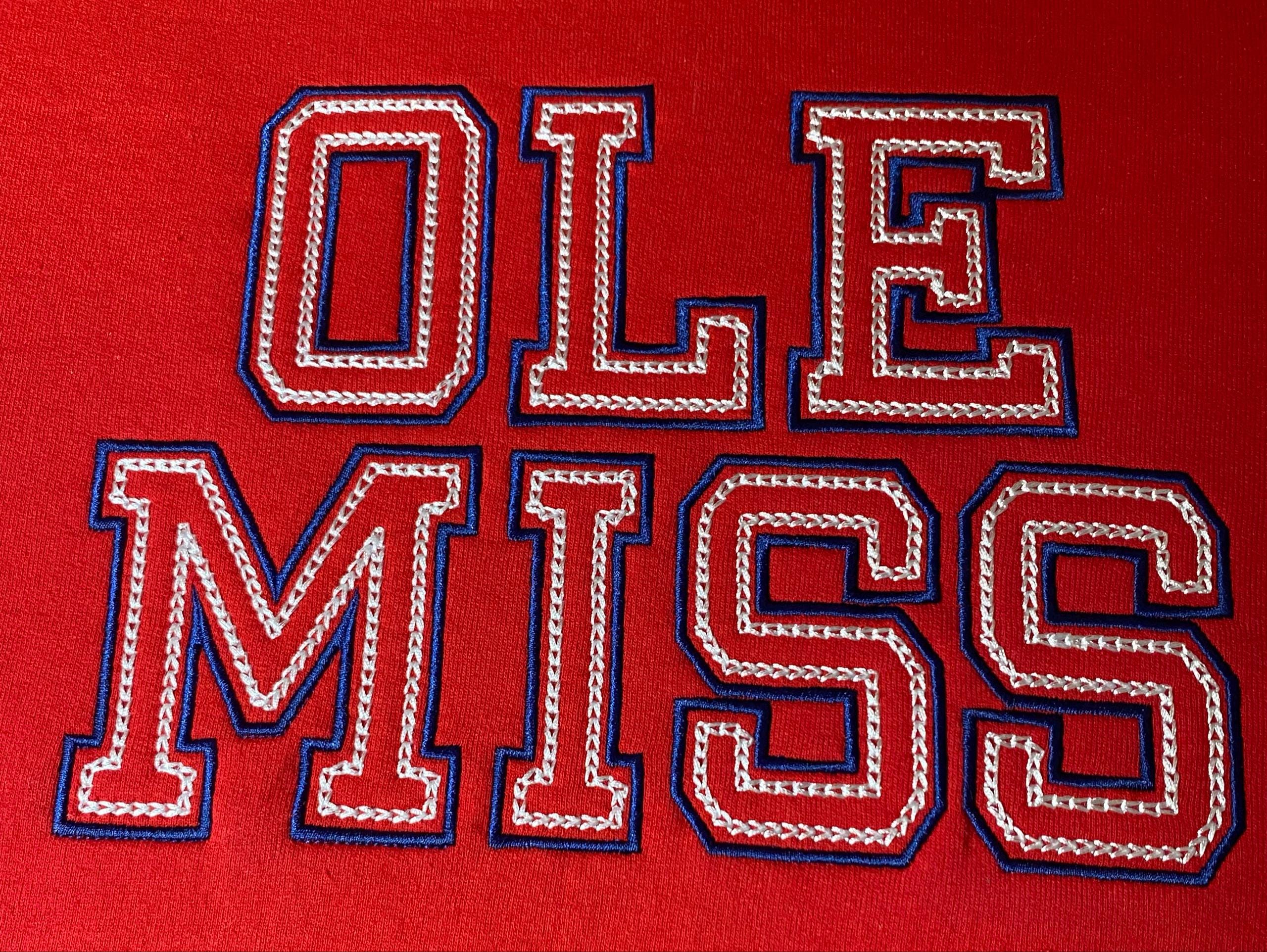 Light Chain stitch and satin stitch 2 outlines Varsity sport Athletic collegiate outline Font machine embroidery designs sizes from 3 up to 6 inches, BX included