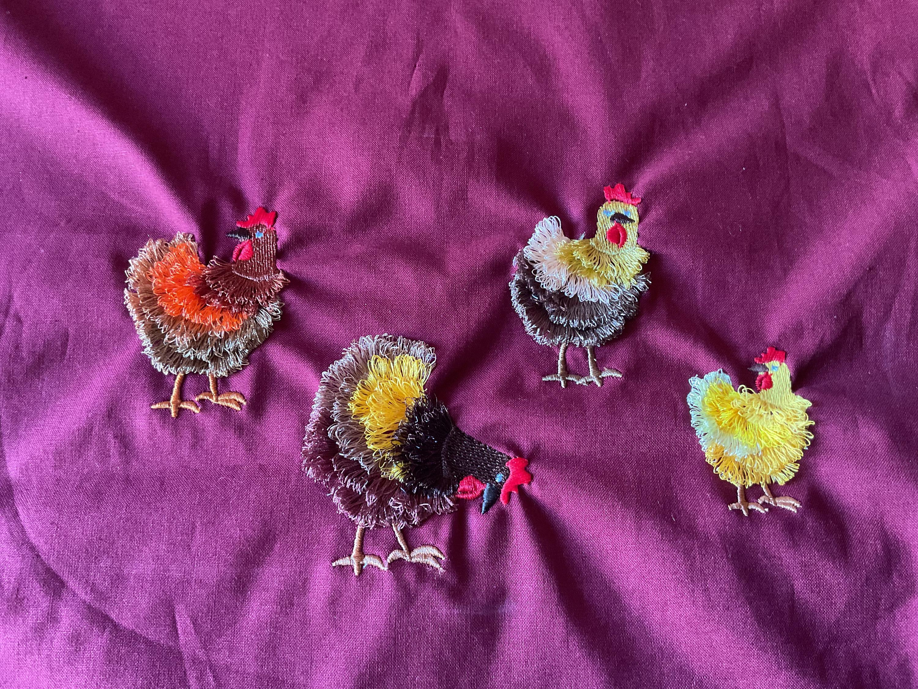 Chicken fringed fluffy chenille farm bird small machine embroidery designs awesome fringe fur chickens design