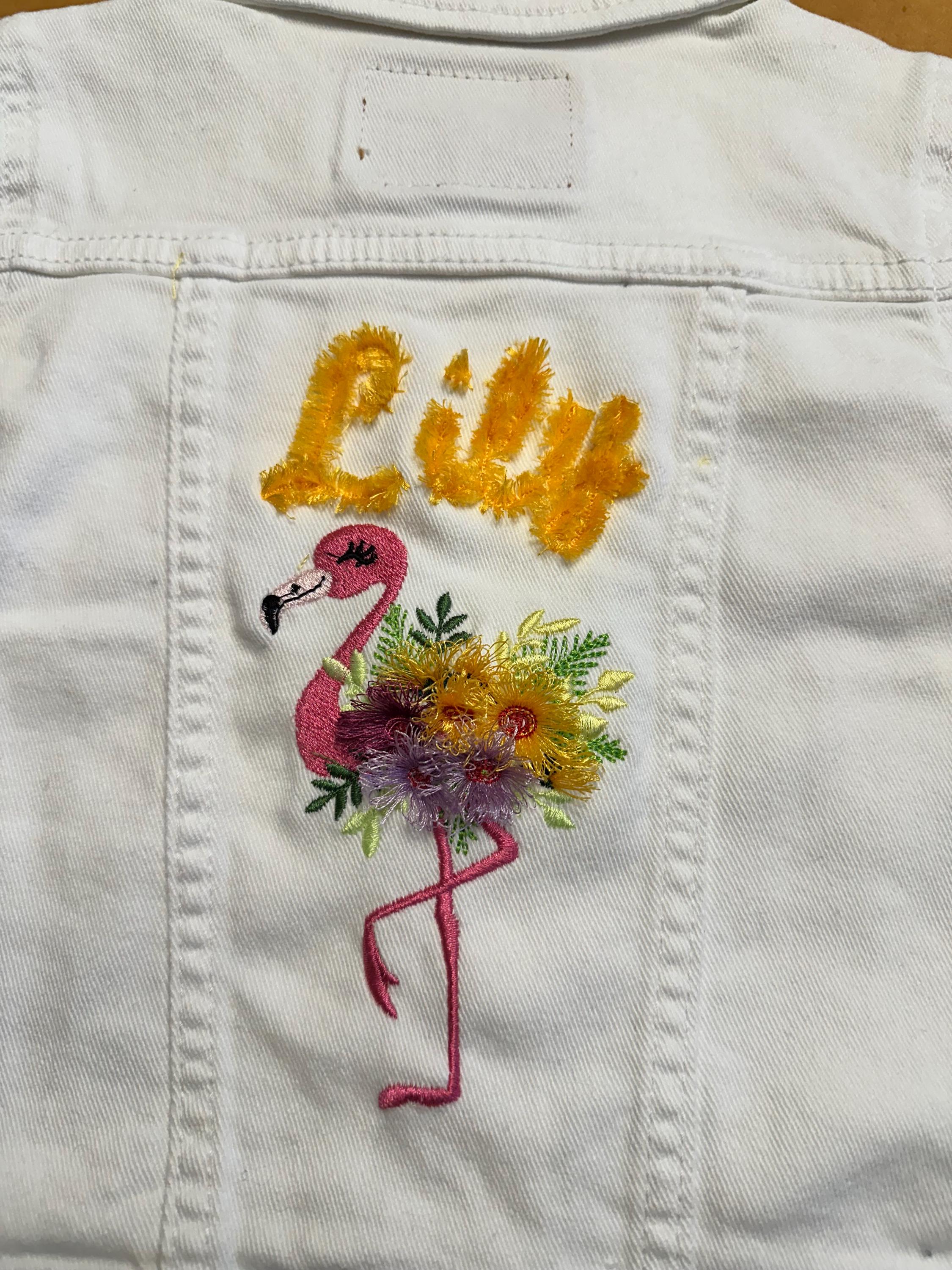 Flamingo floral bouquet machine embroidery designs for hoop 5x7 Flamingo fringed fluffy flowers pretty floral flamingo sizes 5 up to 7 inch