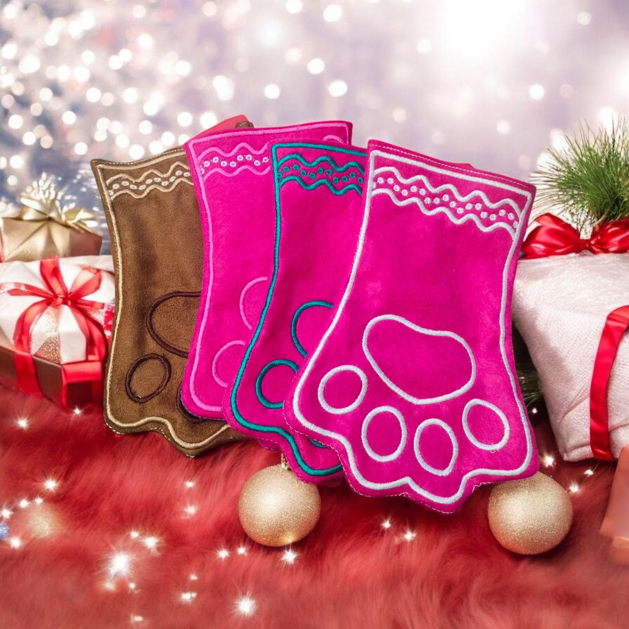 Christmas Stocking SET of 4 types simple felt in the hoop ITH project feltie machine embroidery designs Sock Paw Mitten Bone for advent