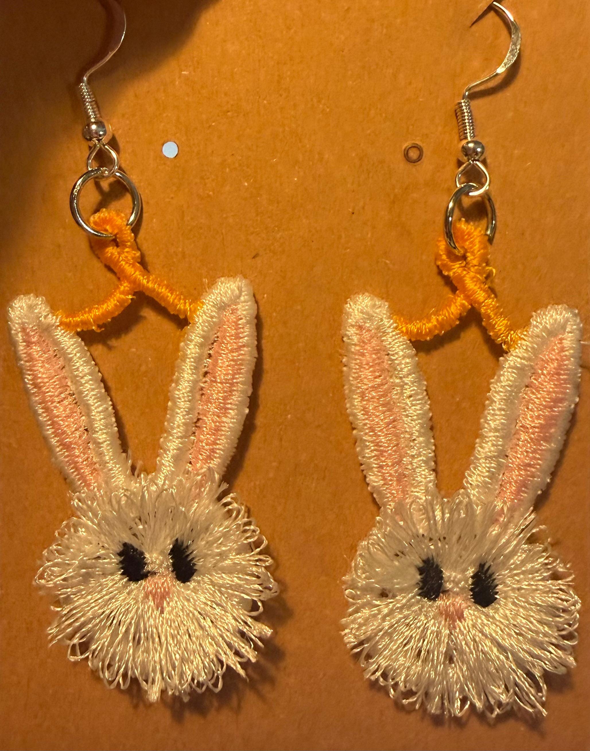 The Easter bunnies are adorable! I did several pairs for friends who were excited to wear them. They stitched out beautifully as all designs from this owner do. The fringed designs are always a hit!