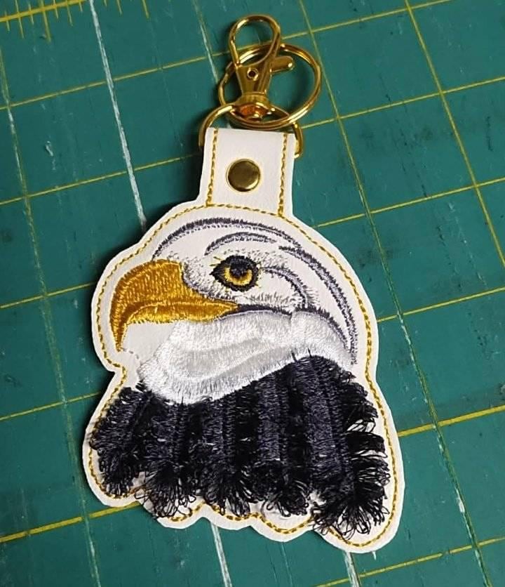 Fringed Eagle key fob snap tab Eagle keychain in the hoop machine embroidery designs ITH project mascot bird fluffy fuzzy eagle gift idea