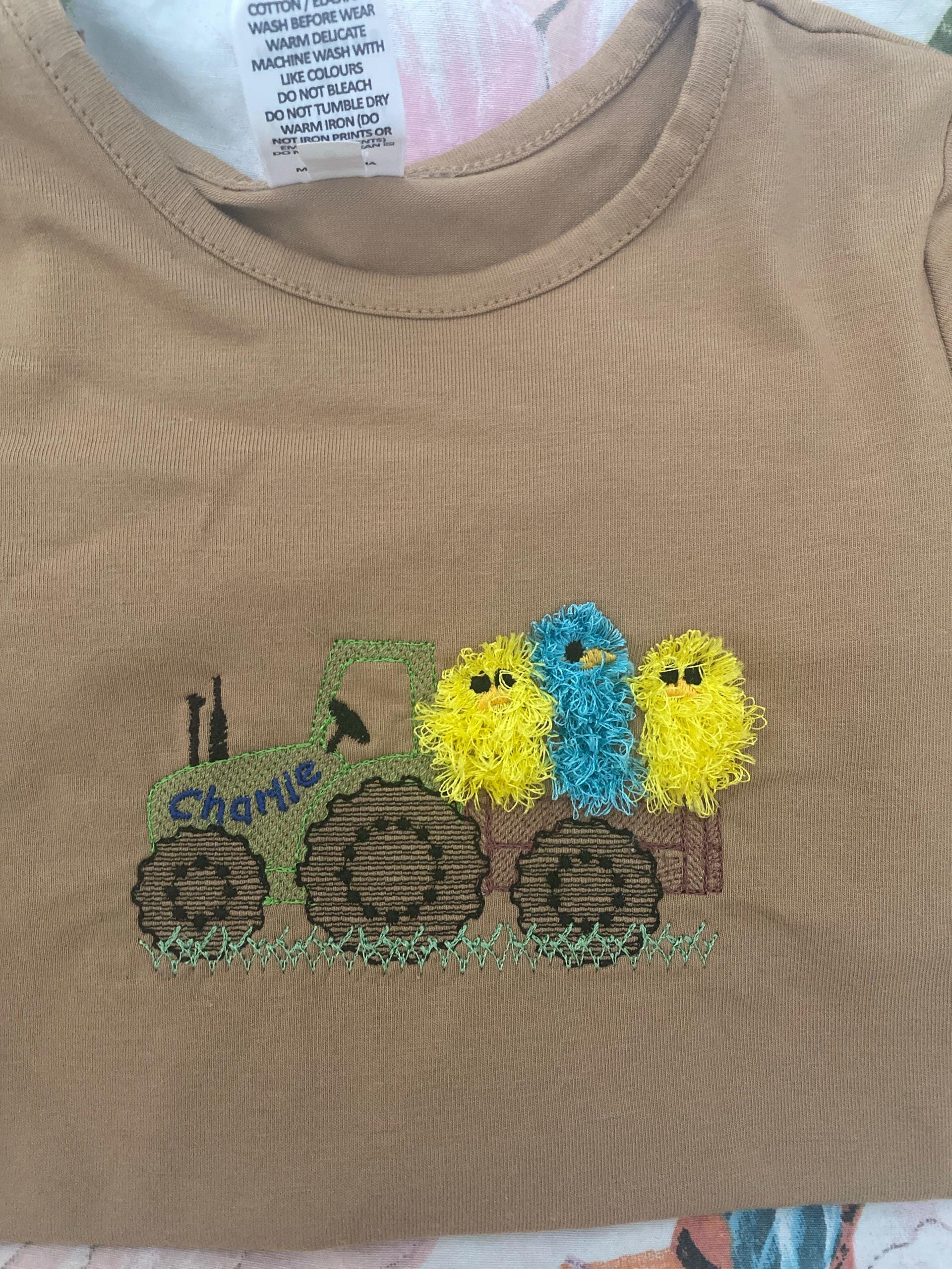 Light Stitch Easter Tractor with cute little Chicks Boys outfit Design Fringe in the Hoop machine embroidery designs fluffy chicken kids