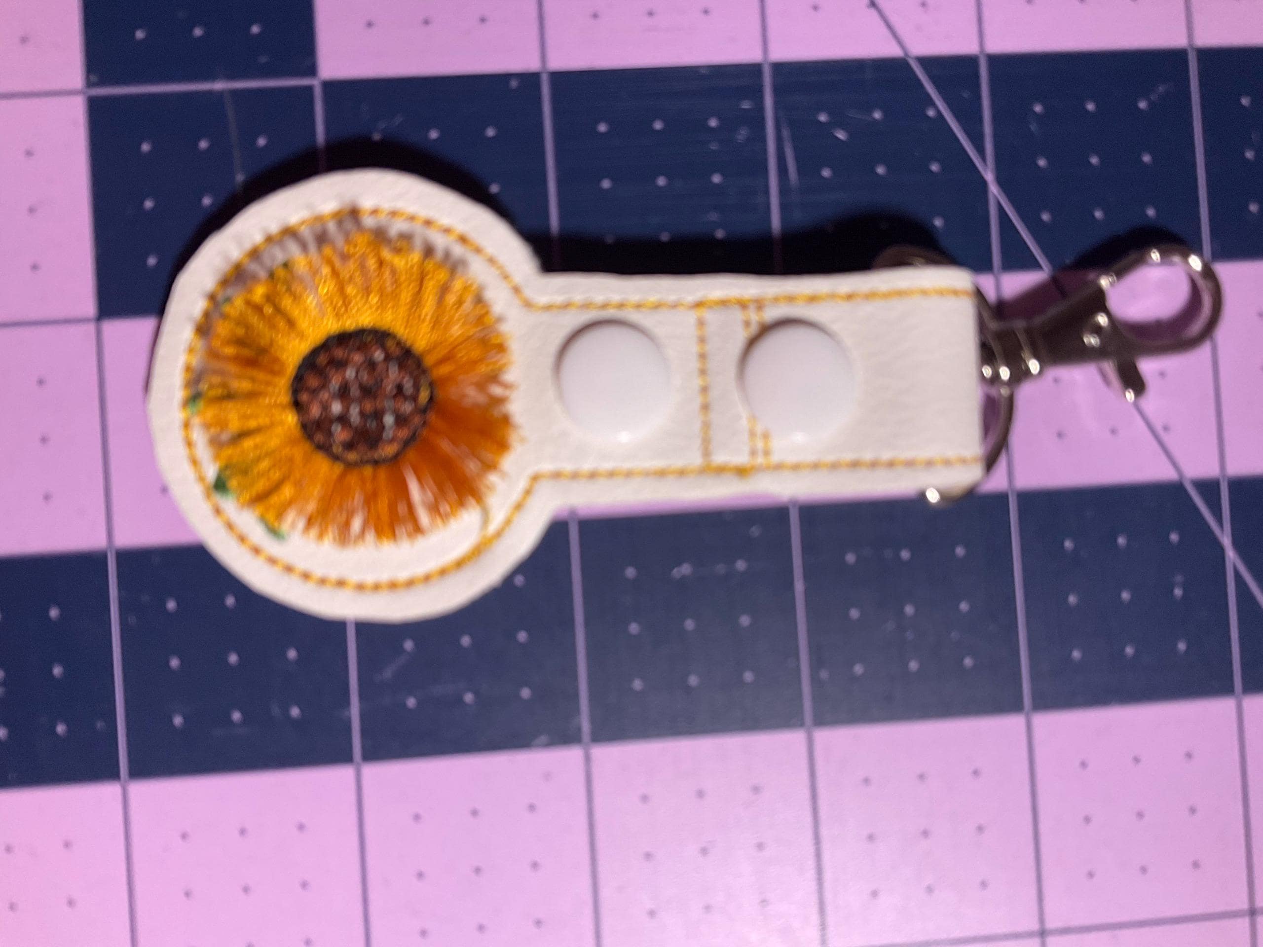 Sunflower fringed Airtag holder tab bag Special DiY Key Snap Tab & eyelet in the hoop machine embroidery designs ITH project backpack tag