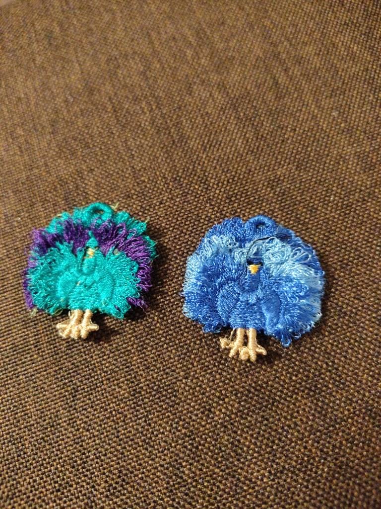 Fringe Peacock Cute Fluffy earrings or charm necklace pendant FSL freestanding lace machine embroidery designs fur fuzzy awesome summer bird