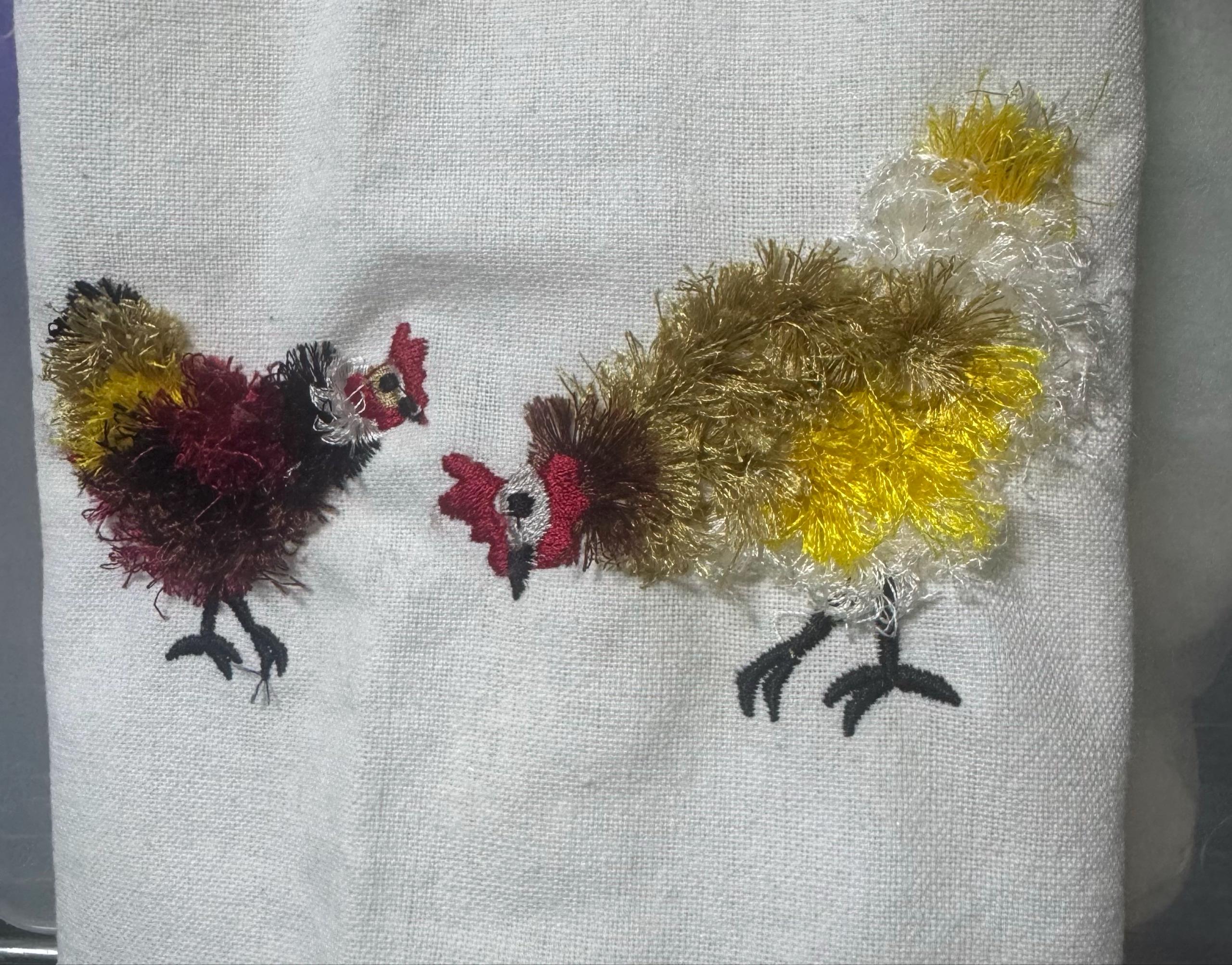 SET of 4 Fluffy Chicken fringed fluffy chenille farm bird small machine embroidery designs awesome fringe fur chickens design