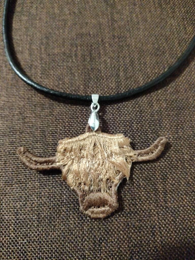 Fringed Highland Cattle earrings charm pendant in the hoop FSL freestanding lace machine embroidery designs ITH fur fuzzy fluffy farm cow