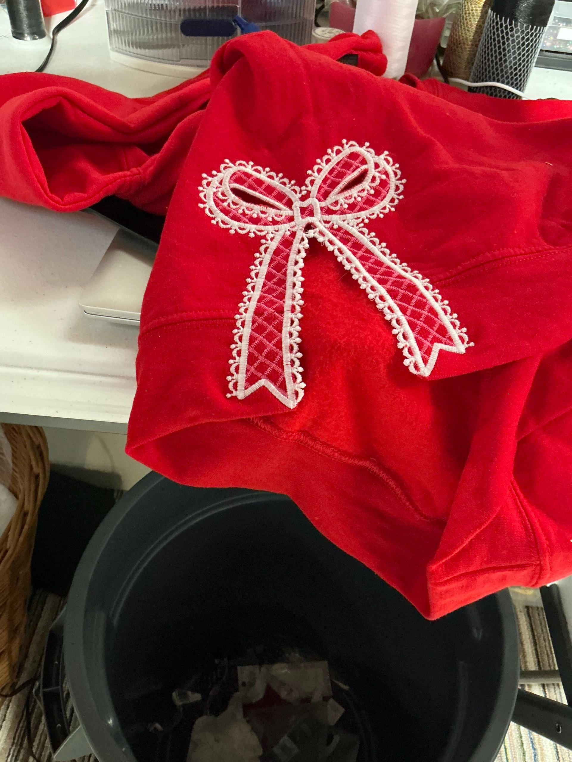 Adorable embroidery design but it’s horrible on a fleece sweatshirt. I couldn’t cut close enough so the sweatshirt shows through the embroidery. It’s still cute.