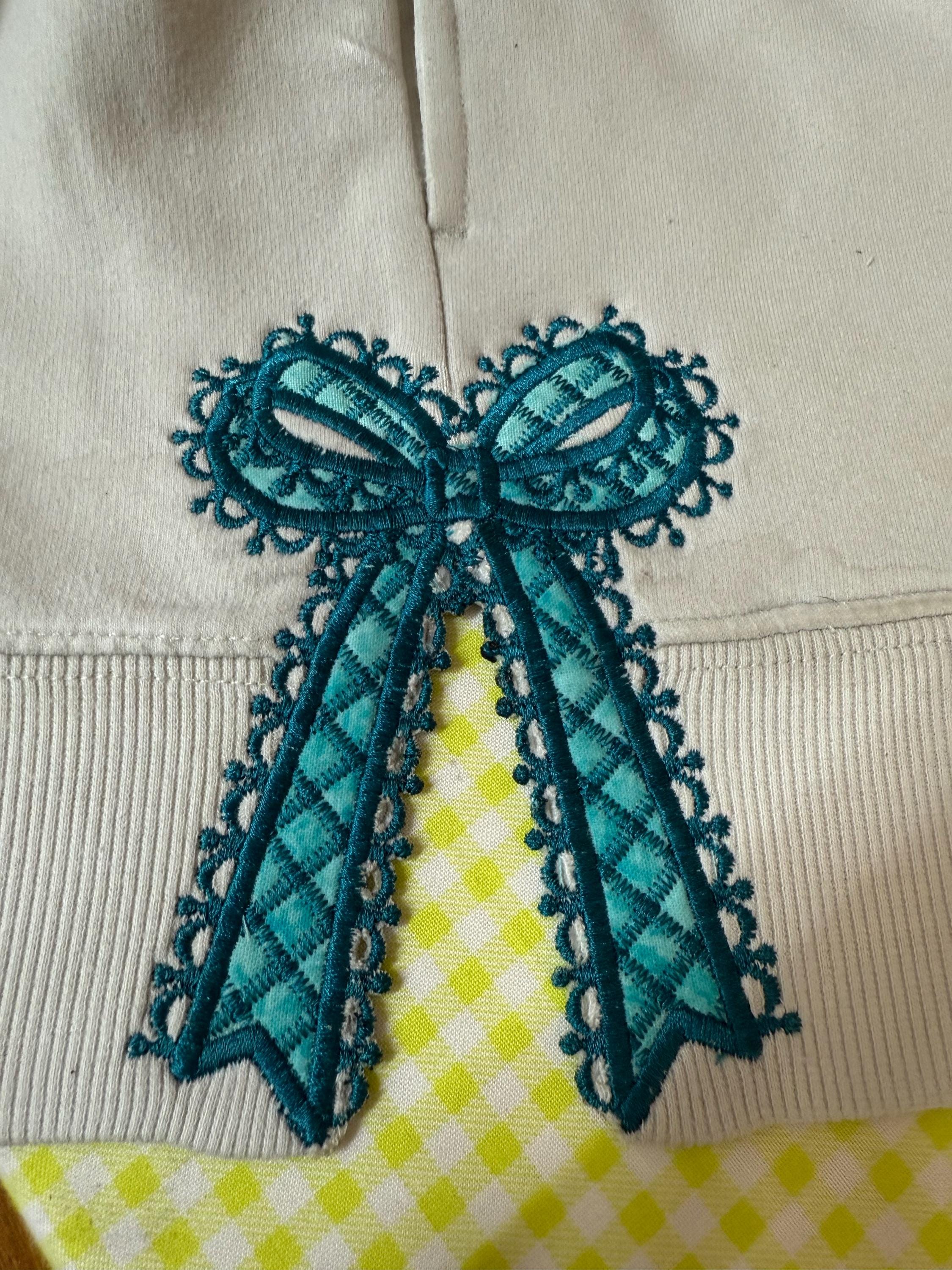 Lace Bow Applique machine embroidery designs Awesome Lace effect checkered plaid gingham ribbon Girly Bow in multiple sizes from 5 to 8 inch