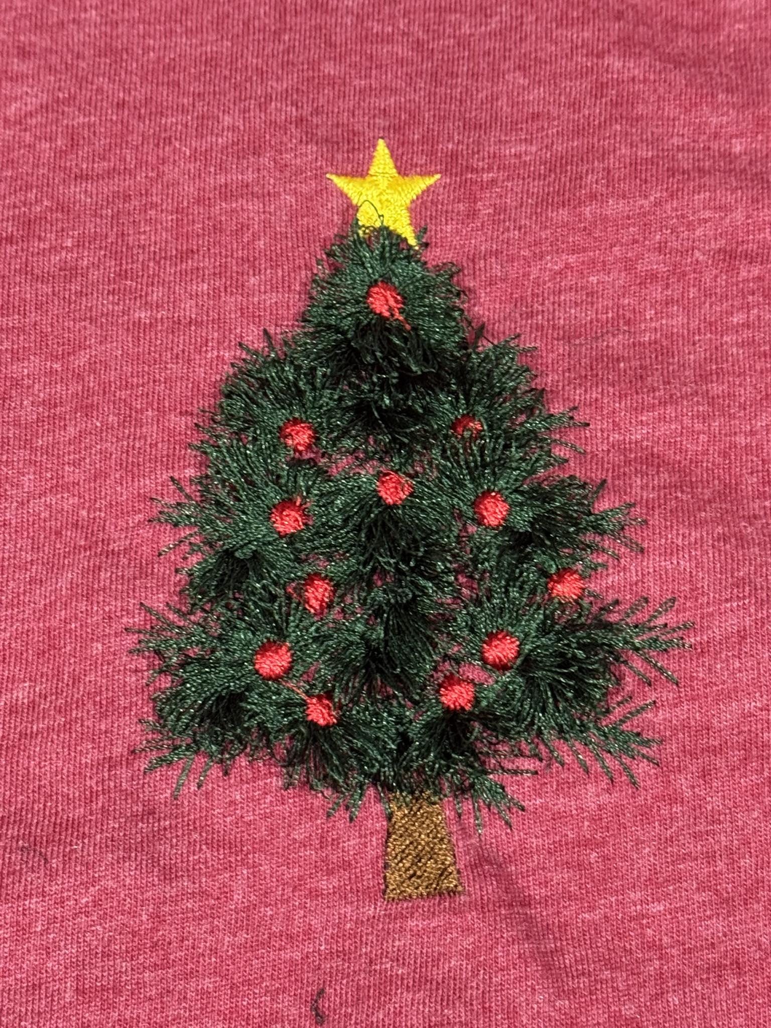 Fringed fluffy Festive Christmas Tree fringe simply ITH in the hoop chenille woodland spruce machine embroidery designs sizes 4 up to 6in