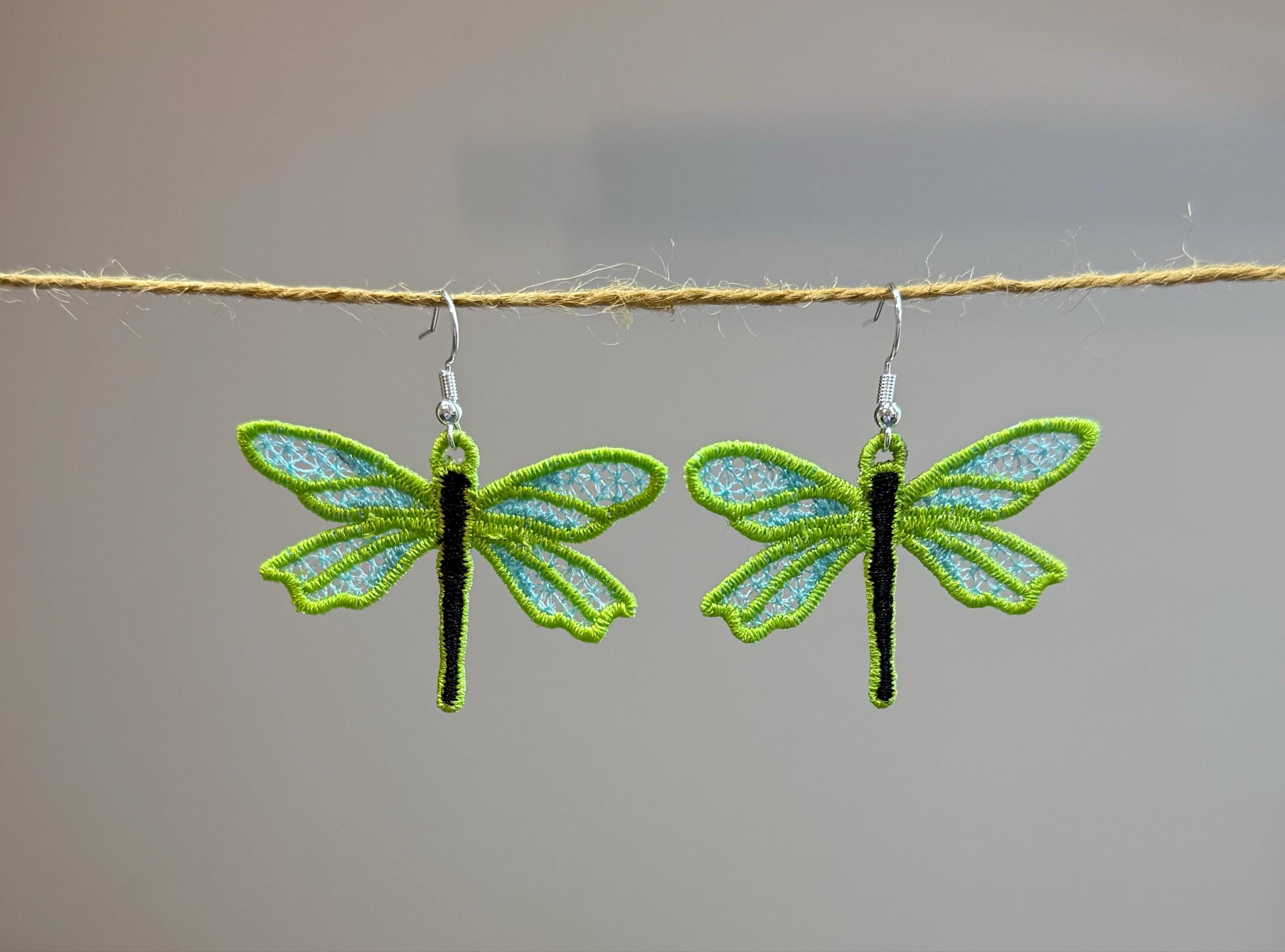 Awesome Dragonfly charm earrings FSL freestanding lace machine embroidery designs kids girls pretty earrings size 1.4in simply in the hoop