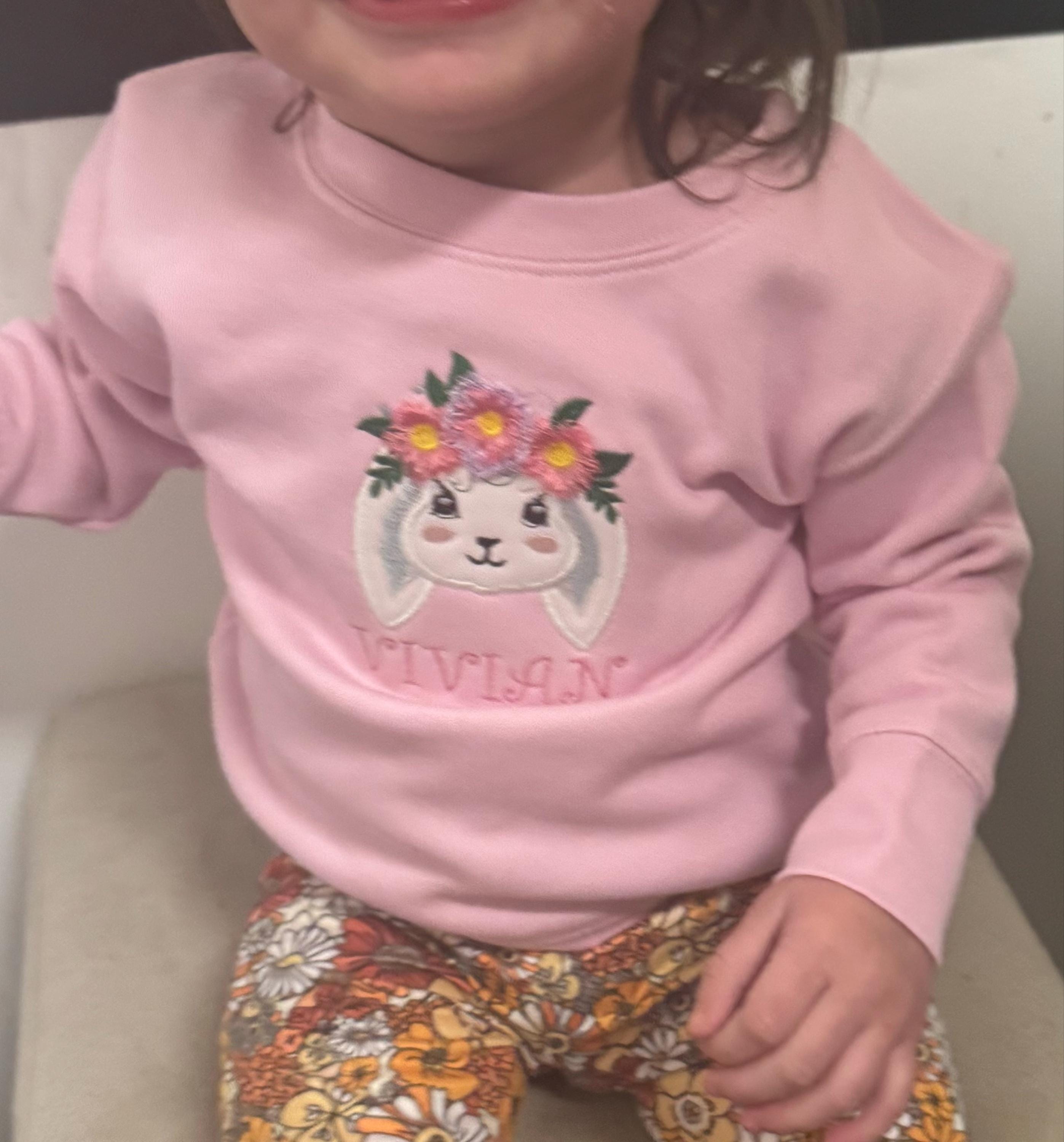 Cute Bunny Applique Fringed Fluffy Floral Crown Boho fringe Daisy flower ITH In the hoop machine embroidery designs kids girls tshirt design