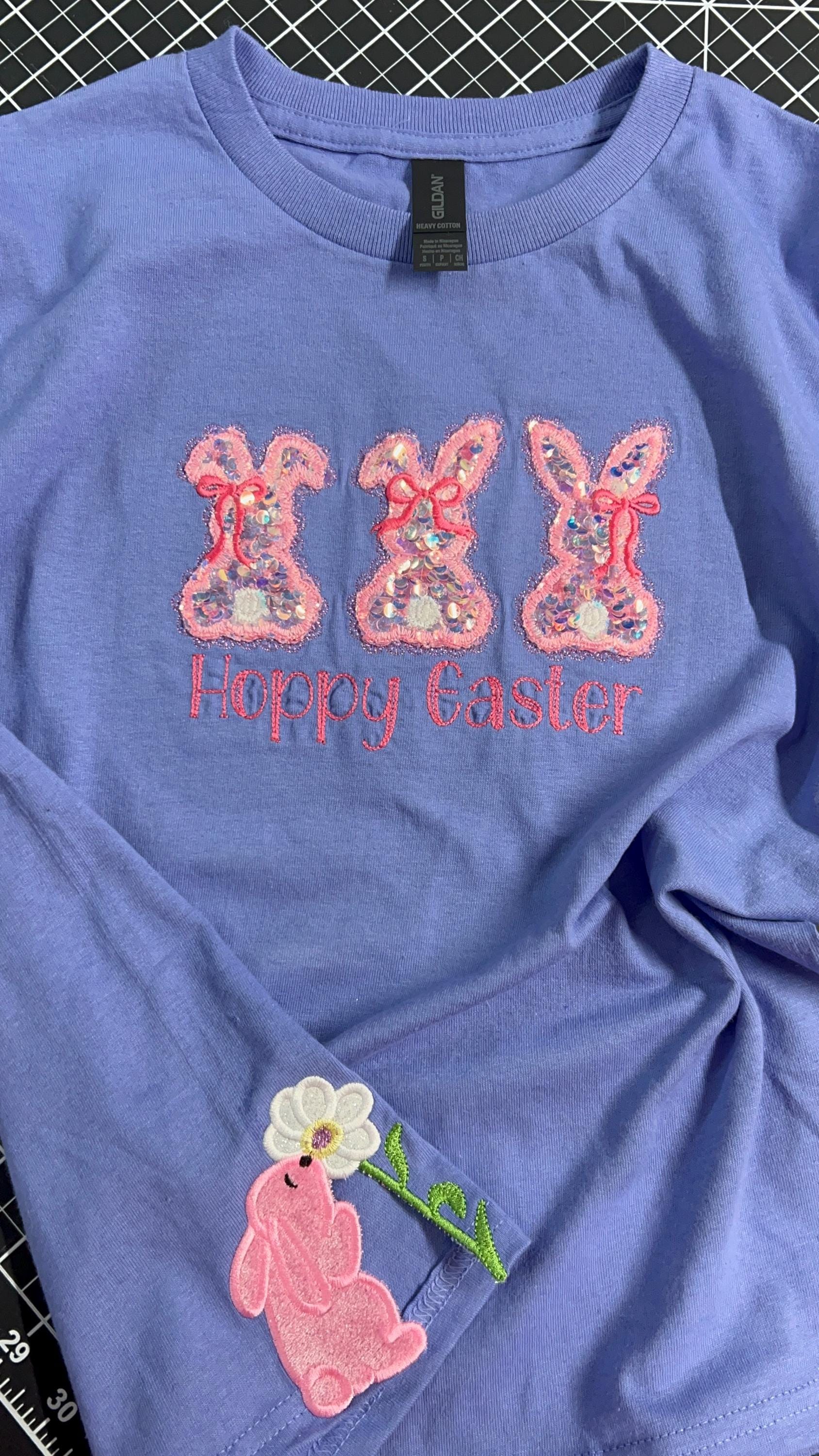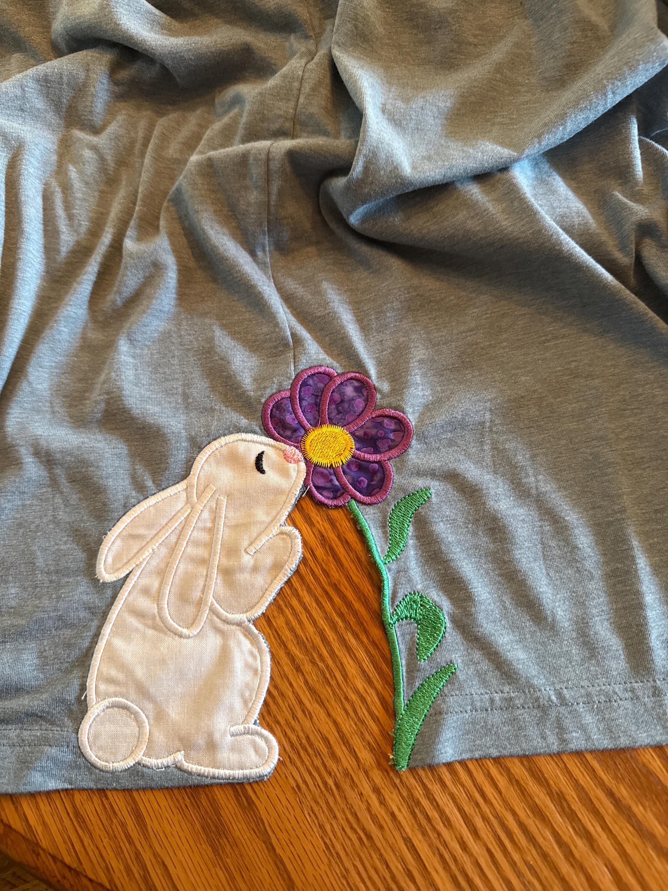 I added this little bunny to two items, and adult size sweatshirt and a youth size tshirt. It turned out so cute and stitched very well!