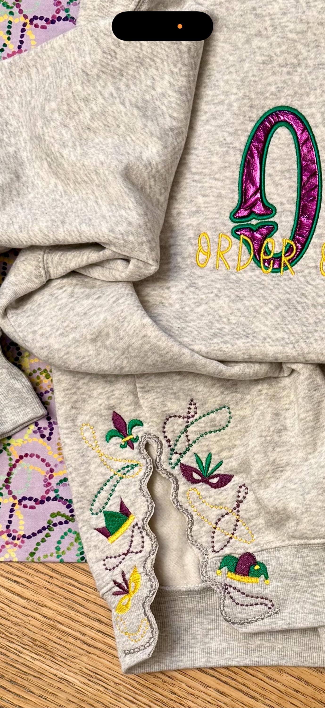 Mardi Gras Carnival split side seam cutout Side Bow machine embroidery designs festive Parade Fat Tuesday t-shirt sweatshirt embroidery