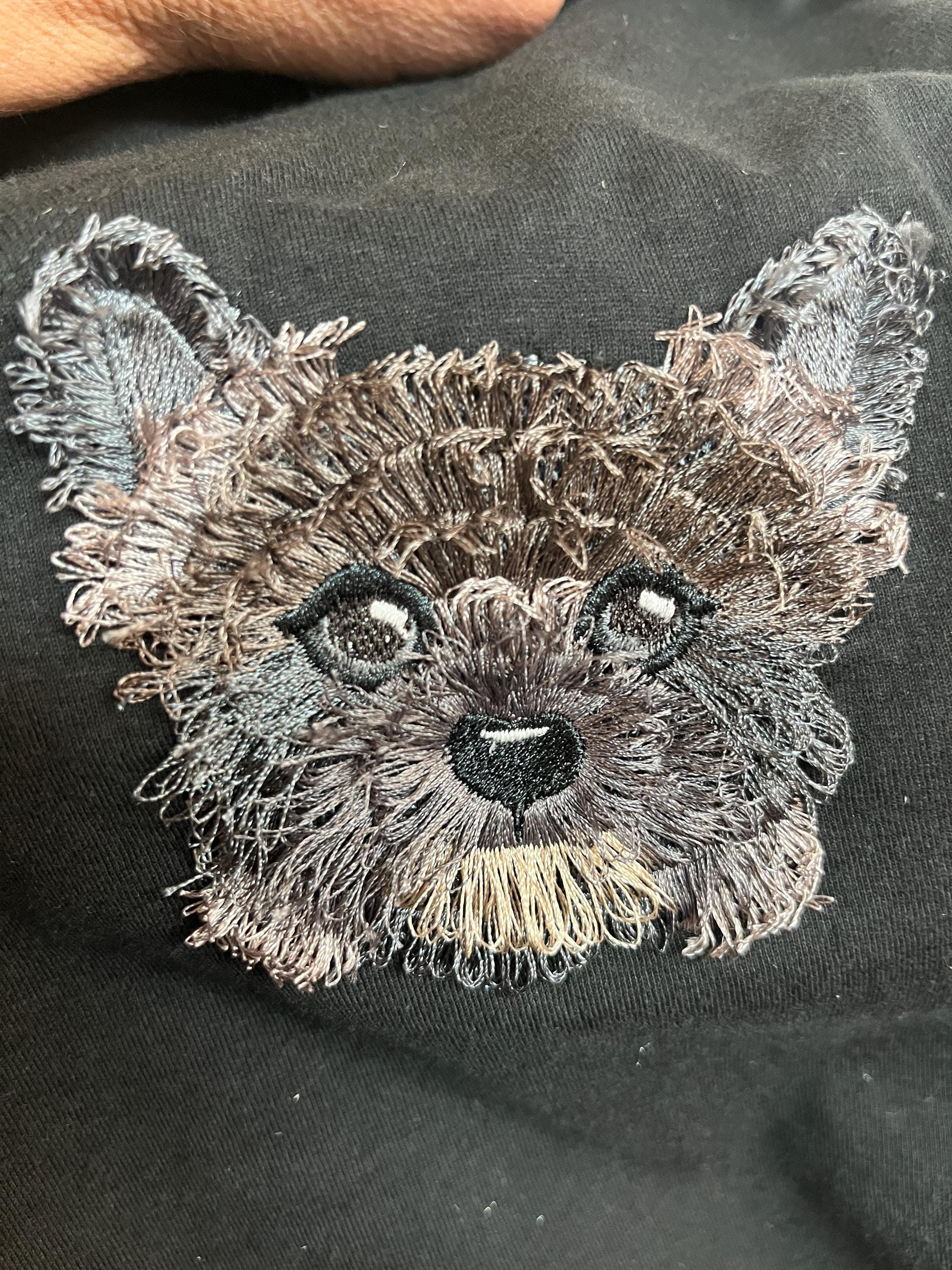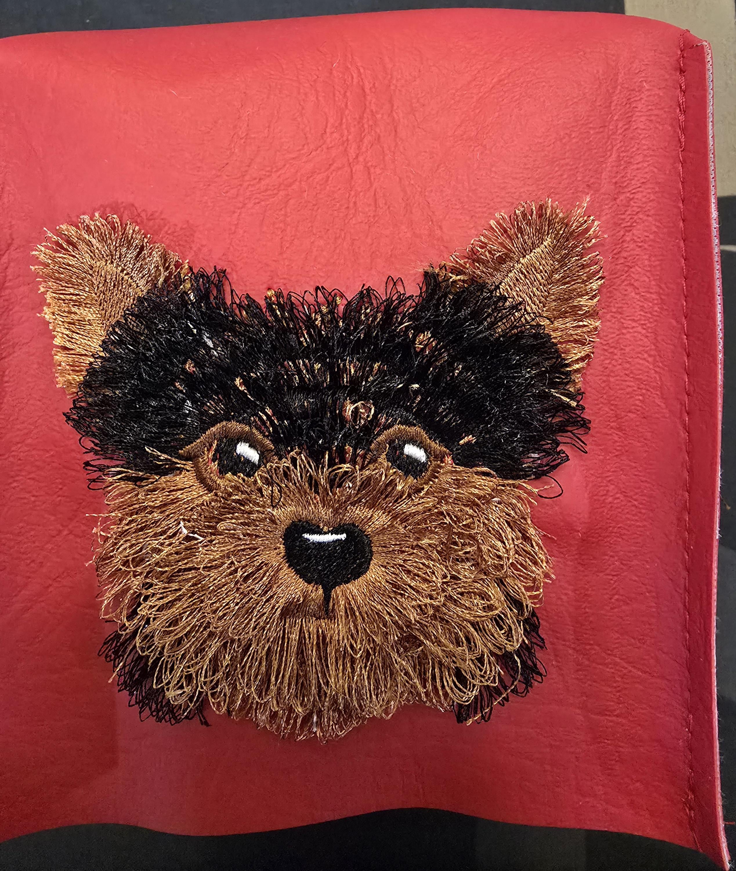 Fringed Fluffy little Puppy Yorkshire Terrier face pet dog head fur chenille machine embroidery designs sizes 3.5 up to 5 inches Yorkie
