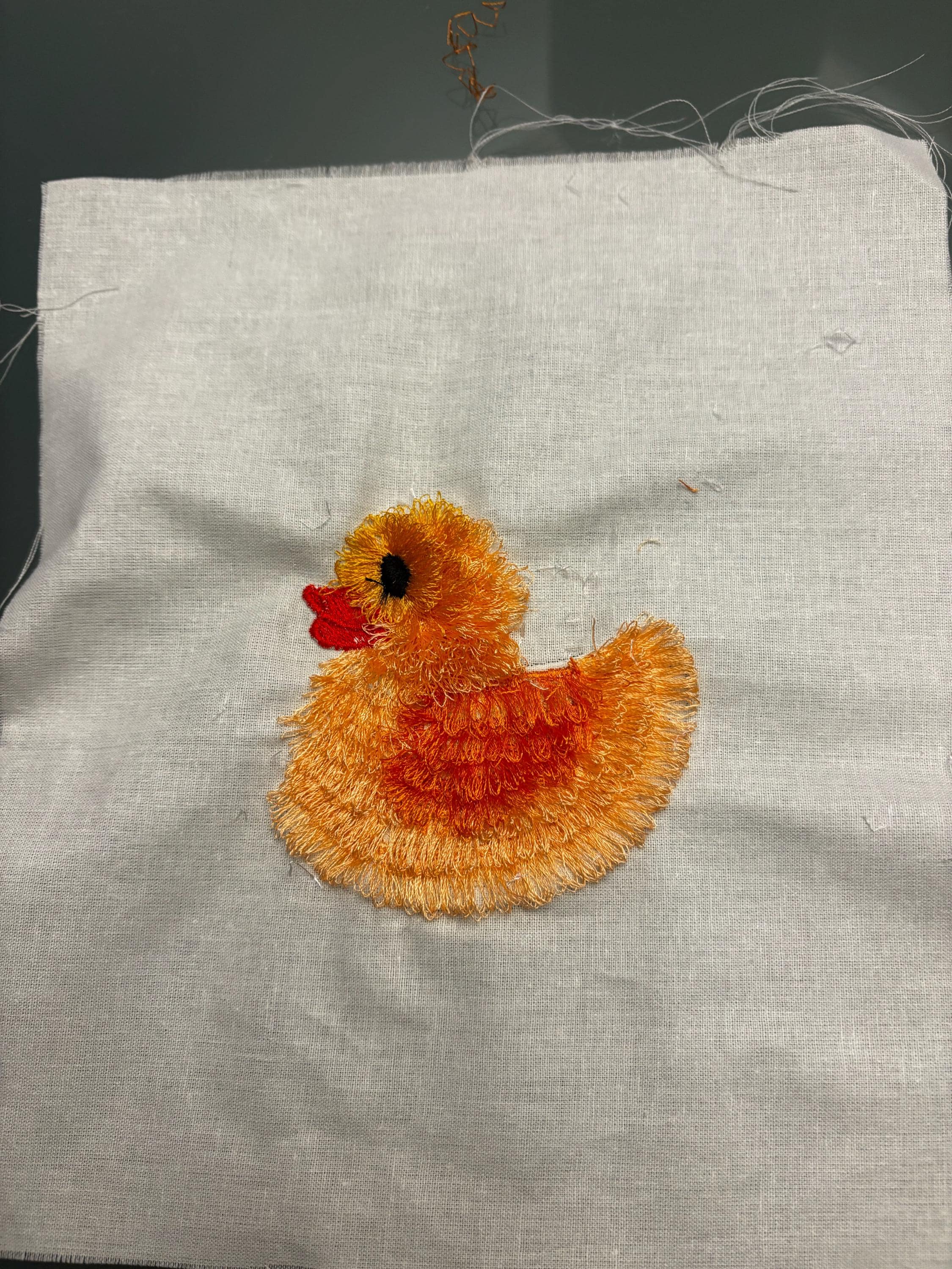 Fringed Rubber Duck awesome Fluffy bath toy design kids baby fur chenille machine fringe embroidery designs assorted sizes 3 up to 4 inches