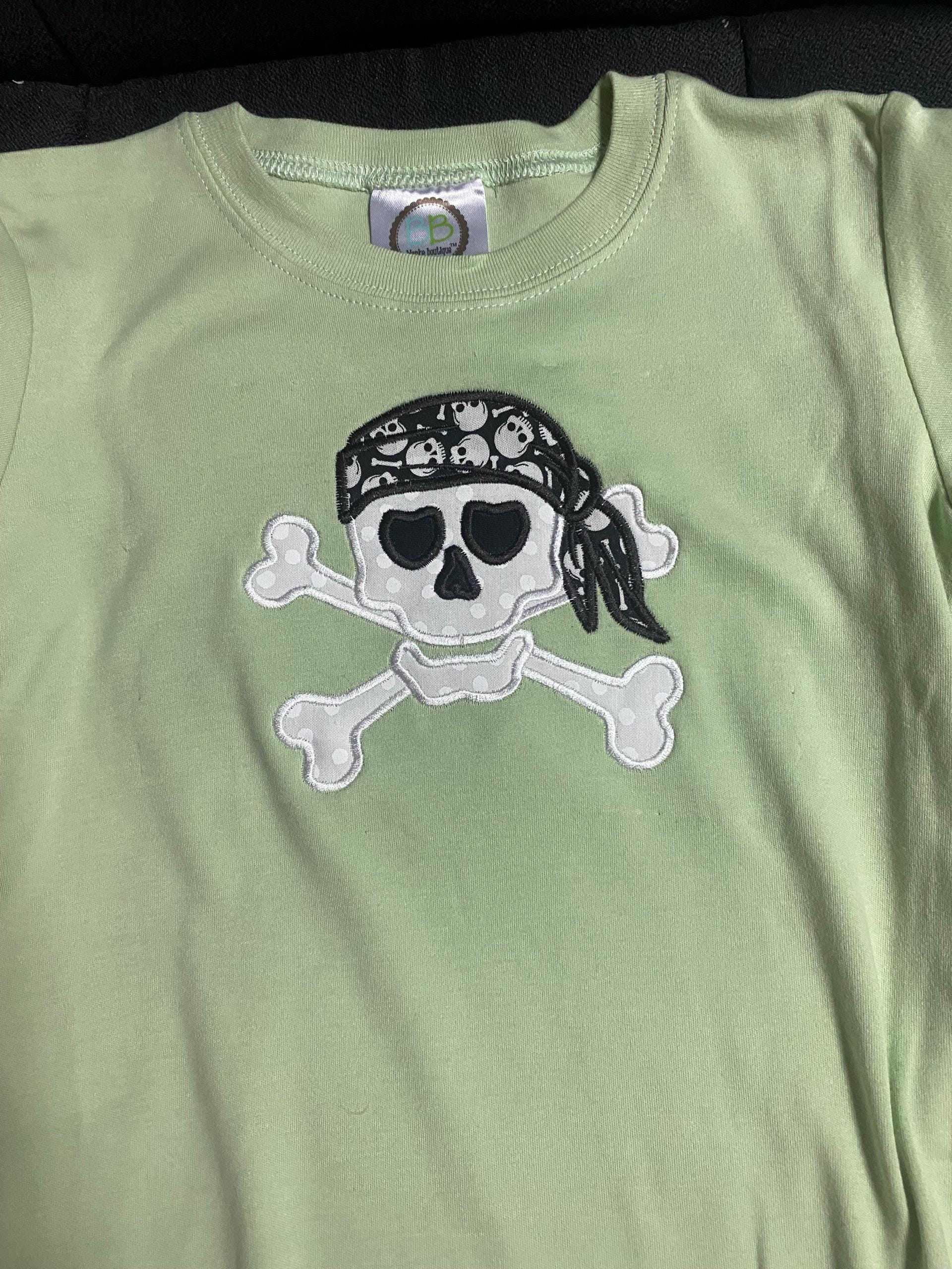 Skull and crossbones pirate with Bandanna fill stitch and Applique machine embroidery designs kids boys design sizes for hoop 4x4 and 5x7