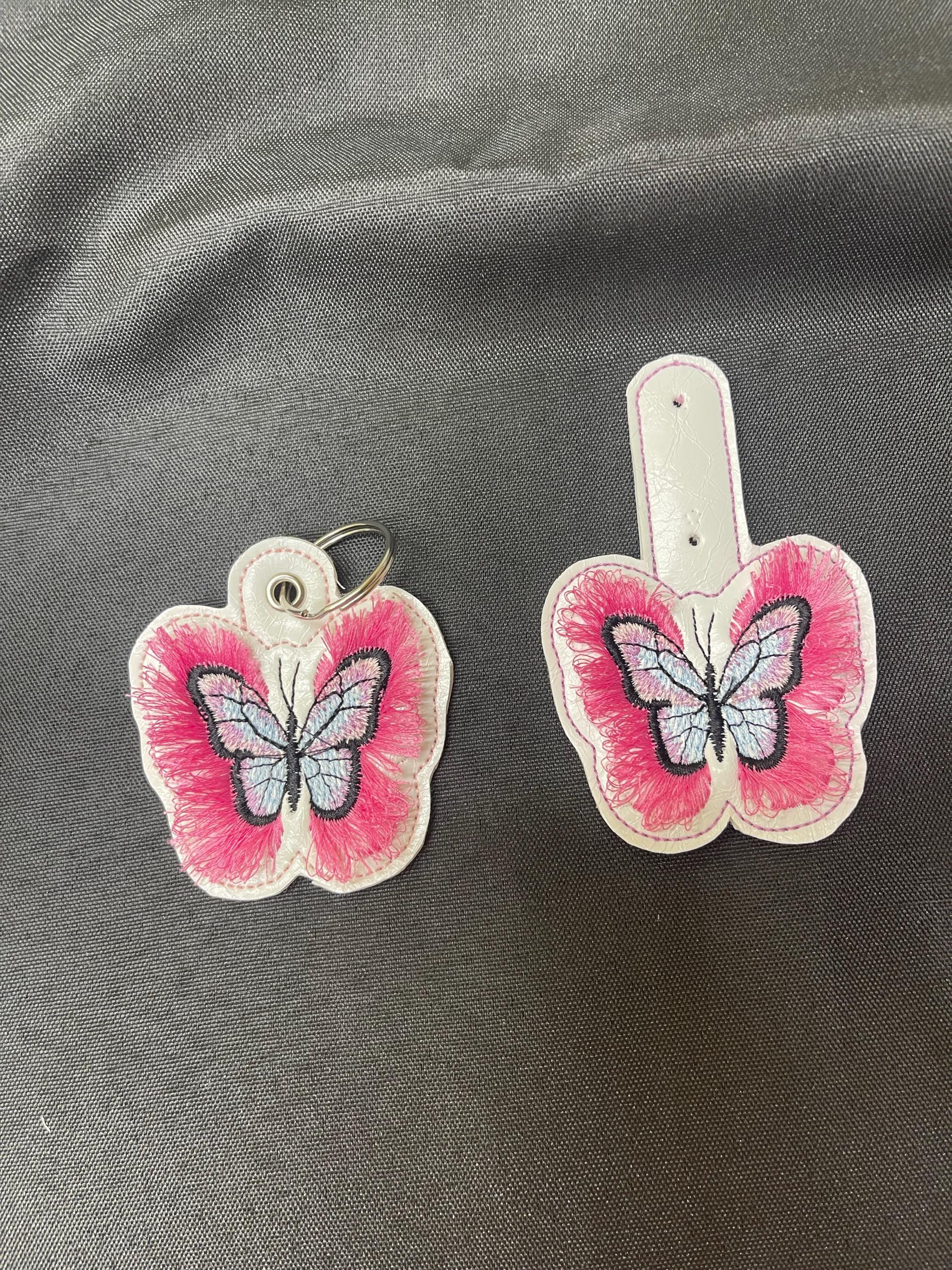 Fringed fluffy wings Butterfly Eyelet and Key Fob Snap Tab fringe keychain in the hoop ITH machine embroidery designs kids girls summer