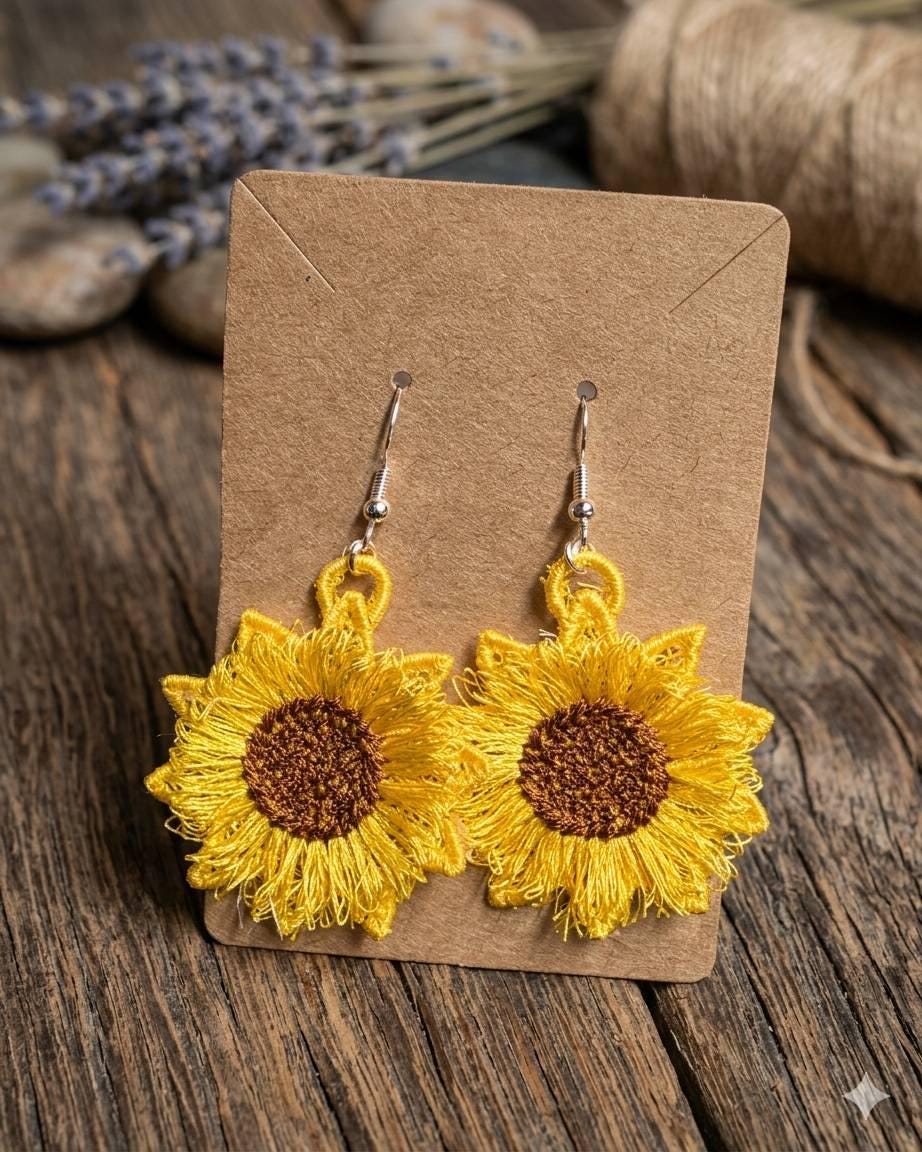Fringed Fluffy Sunflower earrings charm pendant FSL freestanding lace machine embroidery designs kids girls pretty Flower fur fringe design