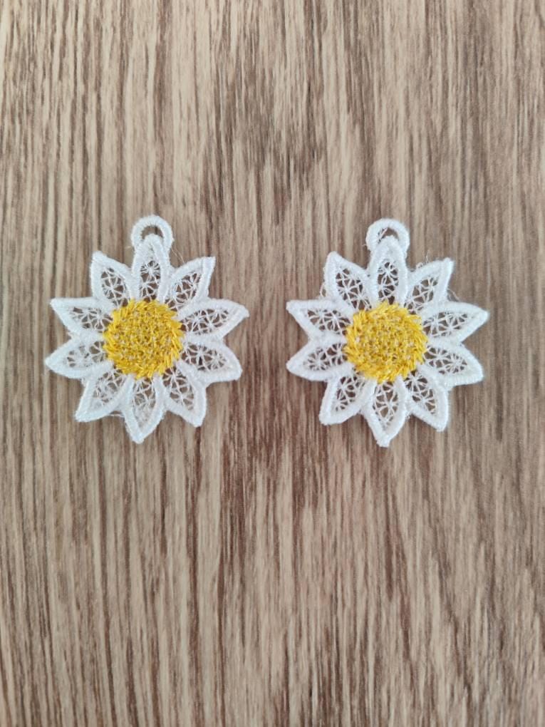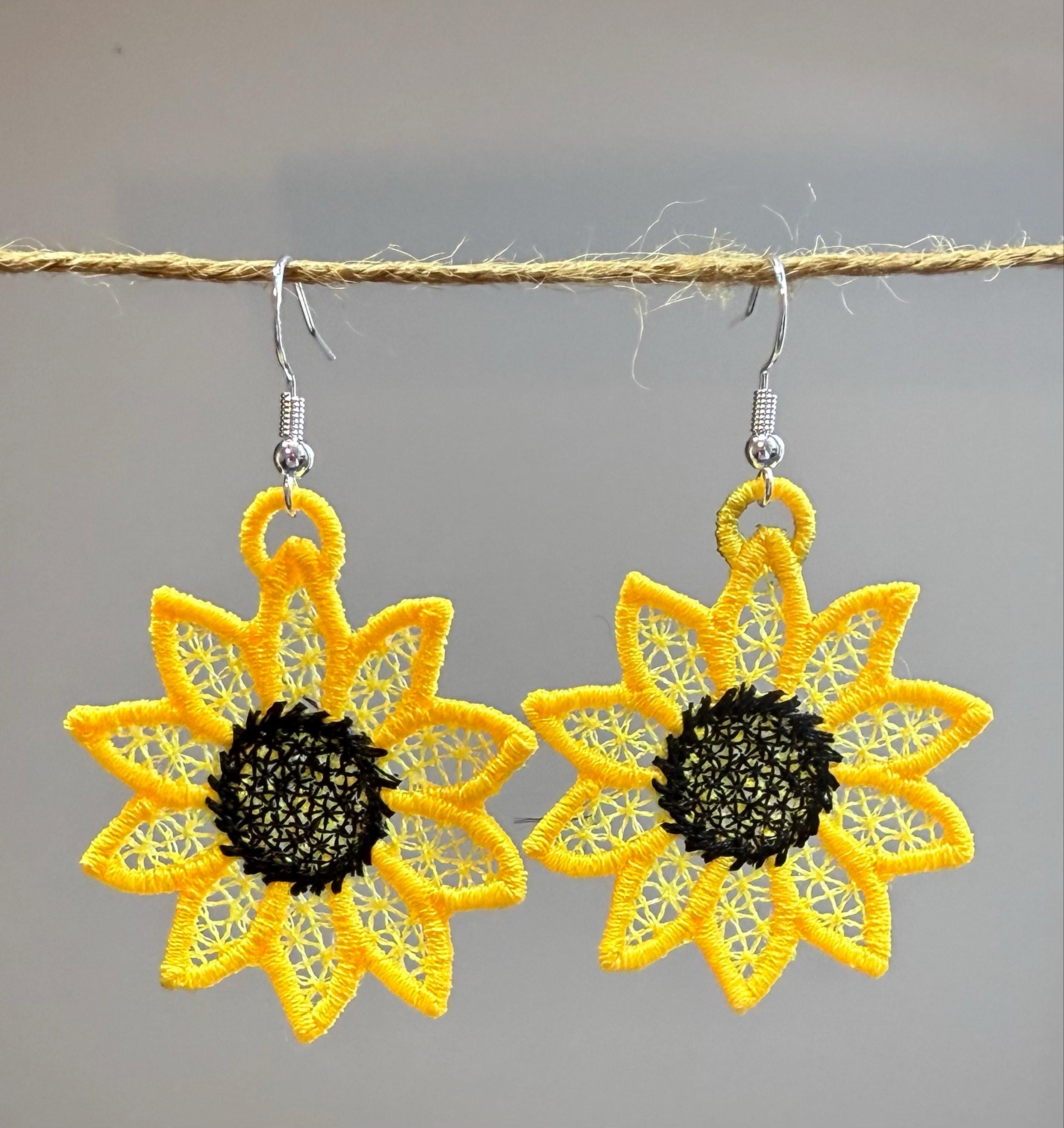 Sunflower charm earrings FSL freestanding lace machine embroidery designs ids girls pretty earrings simply in the hoop ITH project gift idea