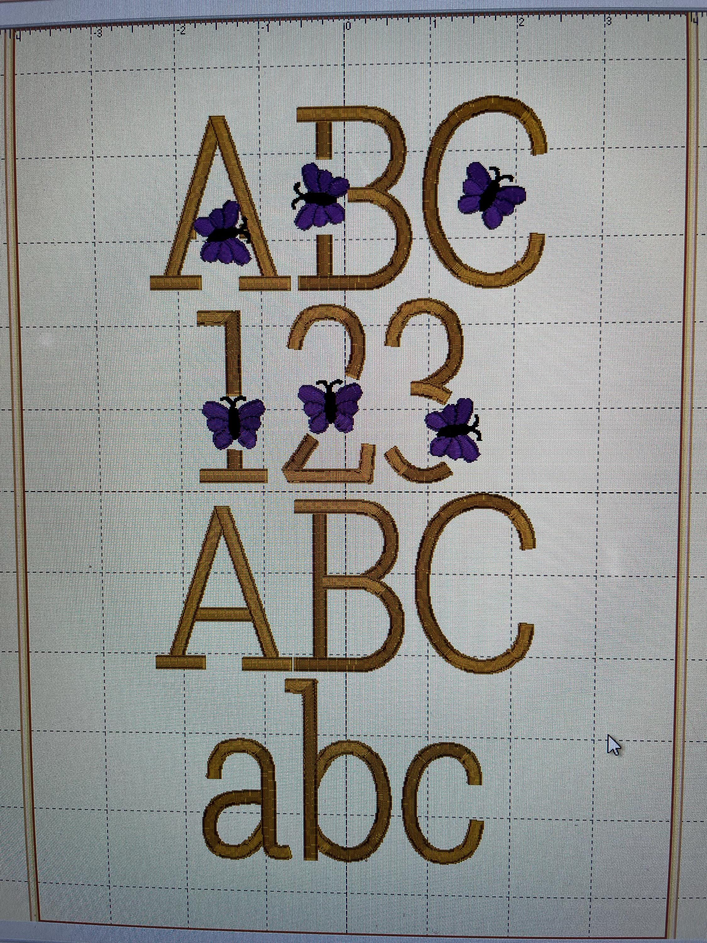 * butterfly font: uppercase and lowercase letters, and numbers.