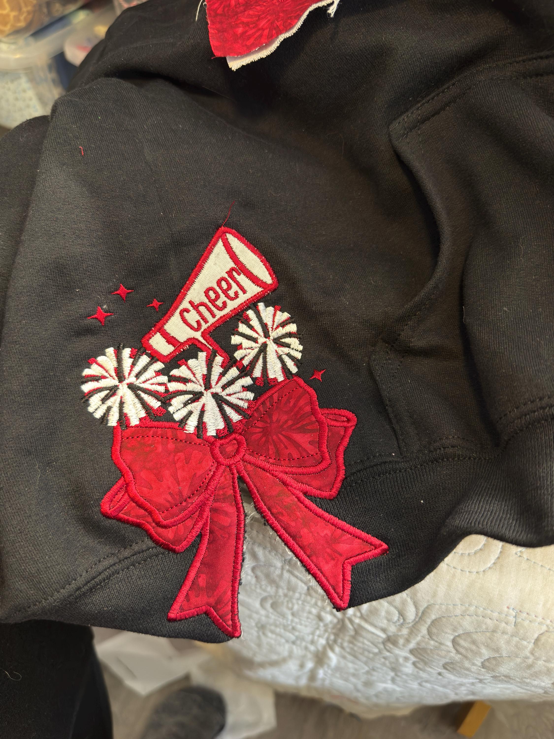 Cheer Sports Cheerleader pompoms easy to do Megaphone Bow Applique side seam Bow machine embroidery designs split seam Girly t-shirt