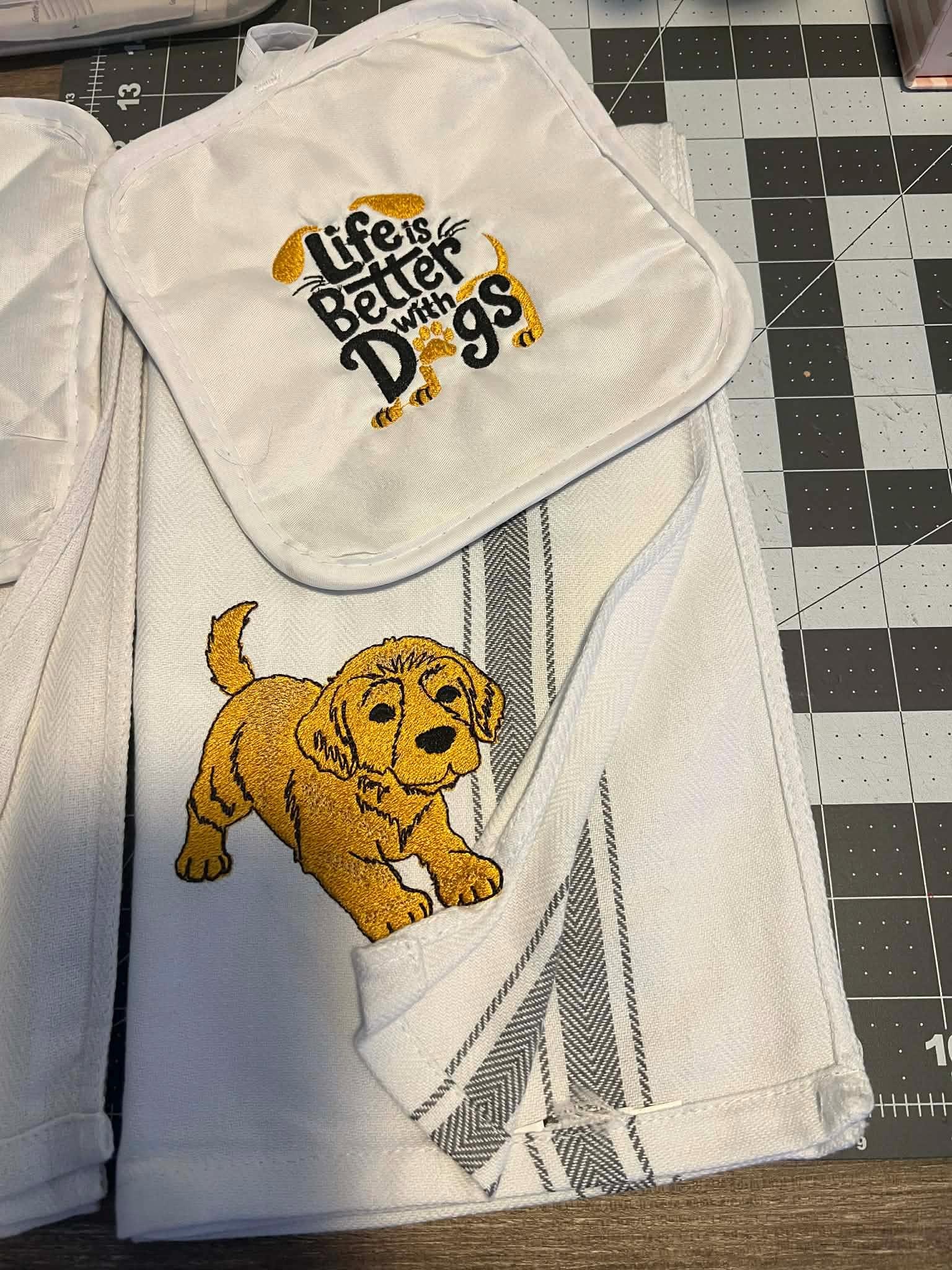 Cute Playing Golden Retriever Puppy Dog Mama kitchen dish towel pet animal kids machine embroidery designs ITH project simply in the hoop
