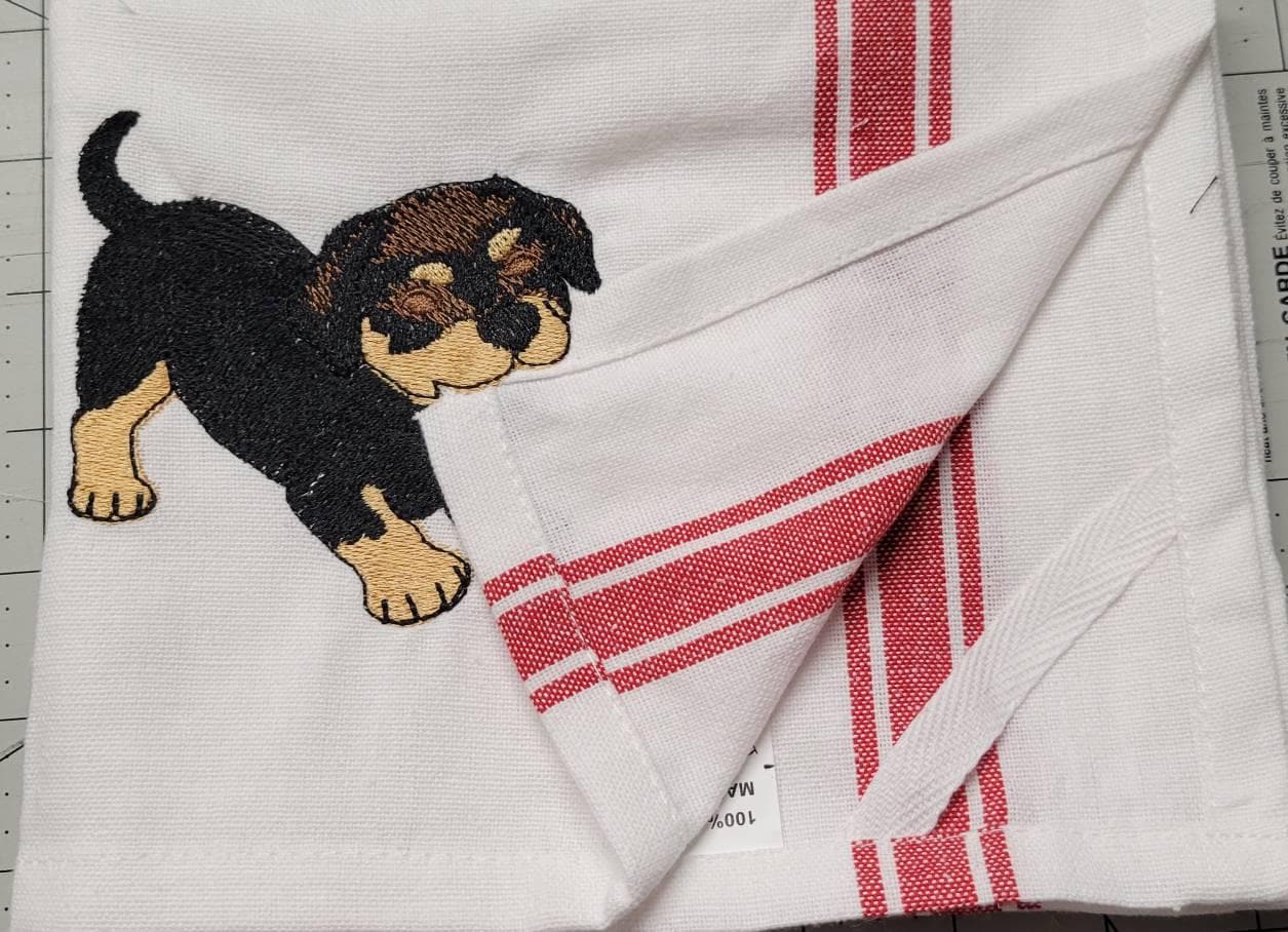 Cute Playing Rottweiler Puppy Dog Mama kitchen dish towel pet animal kids machine embroidery designs ITH project simply in the hoop