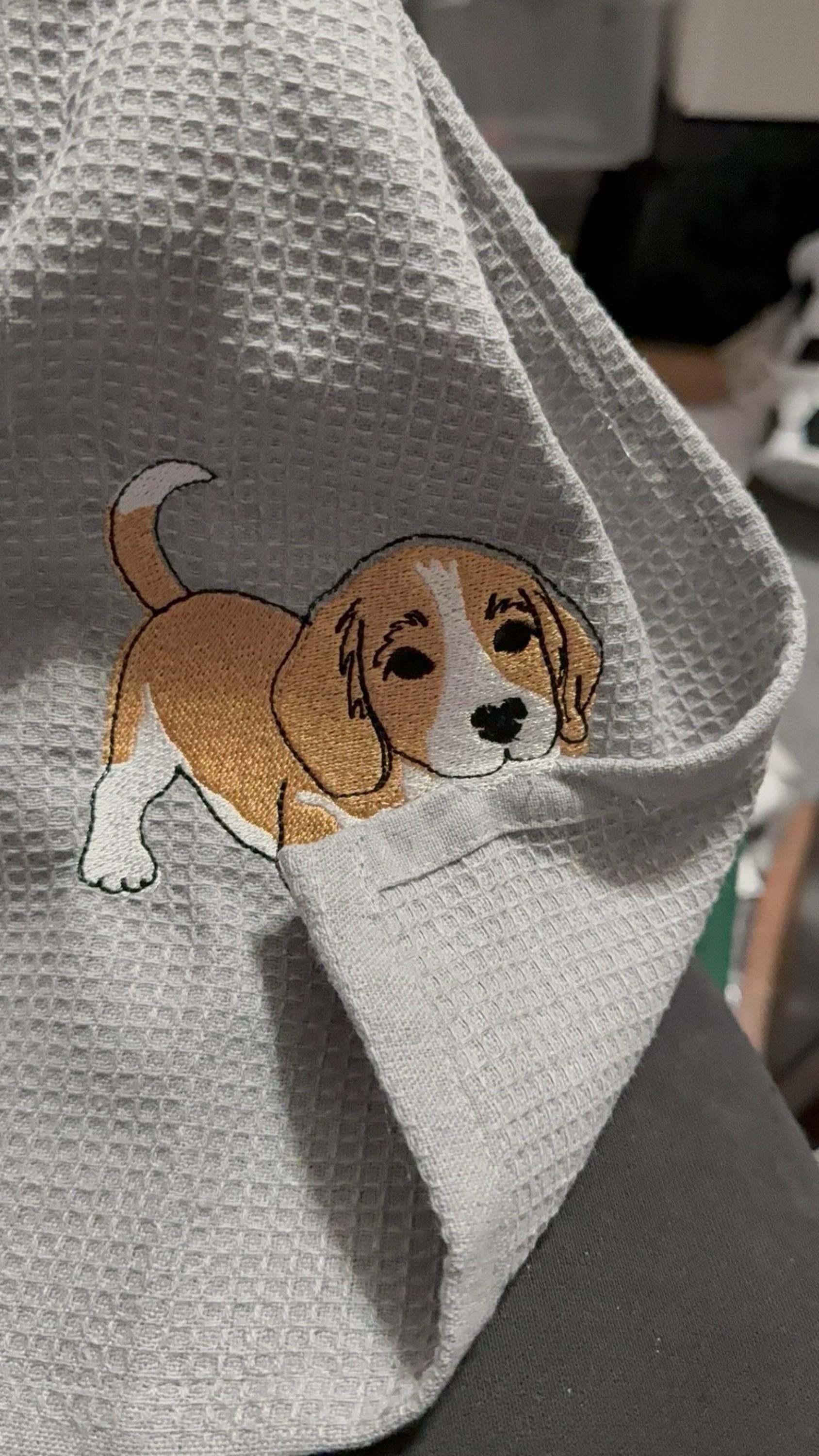 Cute Playing Beagle Puppy Dog Mama kitchen dish towel pet animal kids machine embroidery designs ITH project simply in the hoop