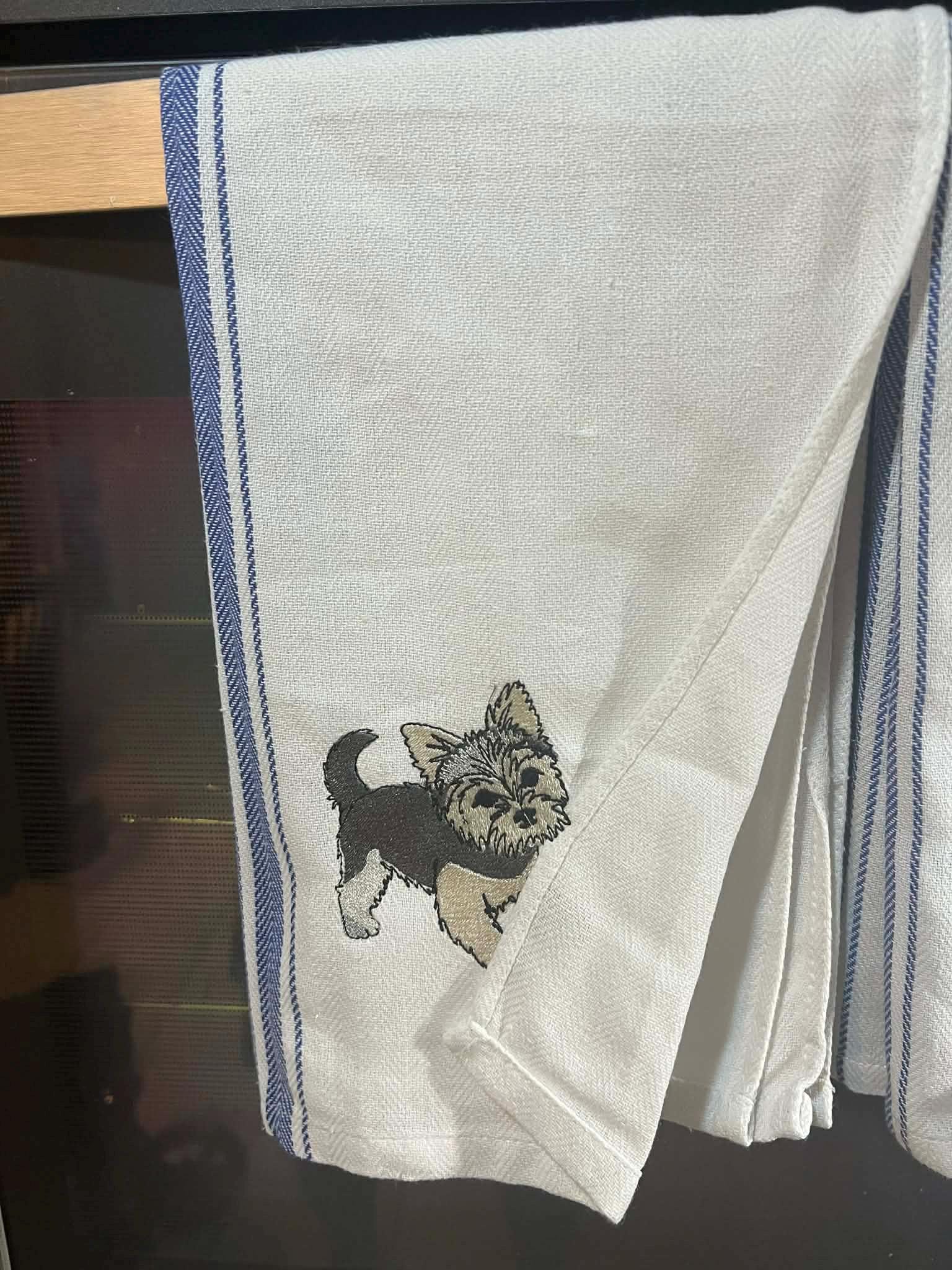 Cute Playing Little Yorkie Puppy Dog Mama kitchen dish towel pet animal kids machine embroidery designs ITH project simply in the hoop
