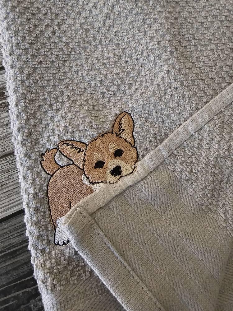 Lovely playing Corgi Puppy Dog Mama kitchen dish towel pet animal kids machine embroidery designs ITH project simply in the hoop project