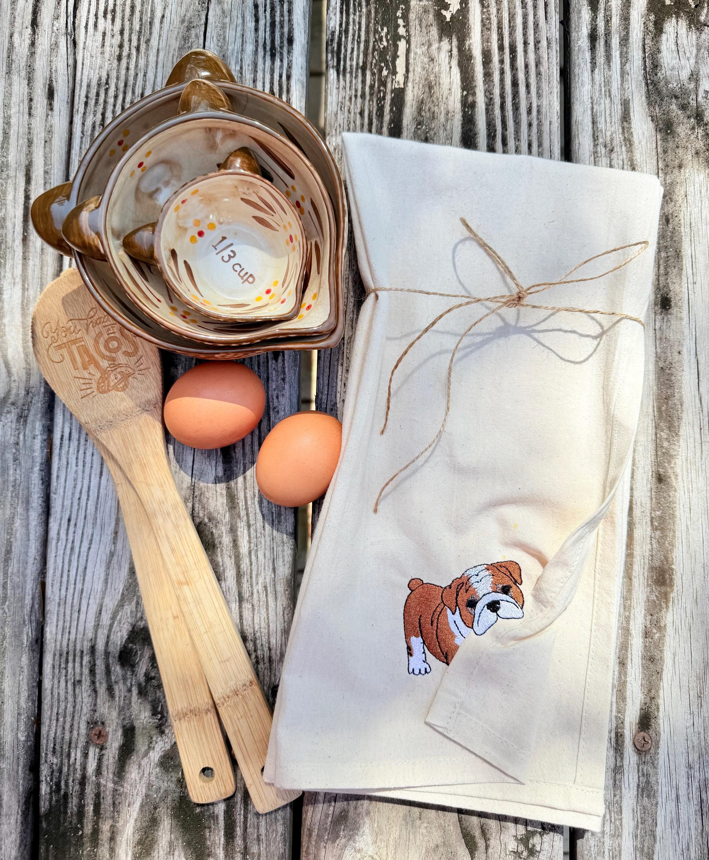 Lovely playing Bulldog Puppy Dog Mama kitchen dish towel pet animal kids machine embroidery designs ITH project simply in the hoop project