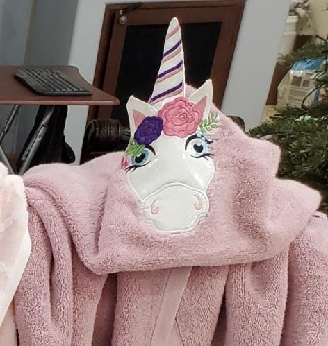 HOODED TOWEL Unicorn, hooded towel topper machine embroidery design Unicorn head ears horn ITH in the hoop dimensional machine applique kids