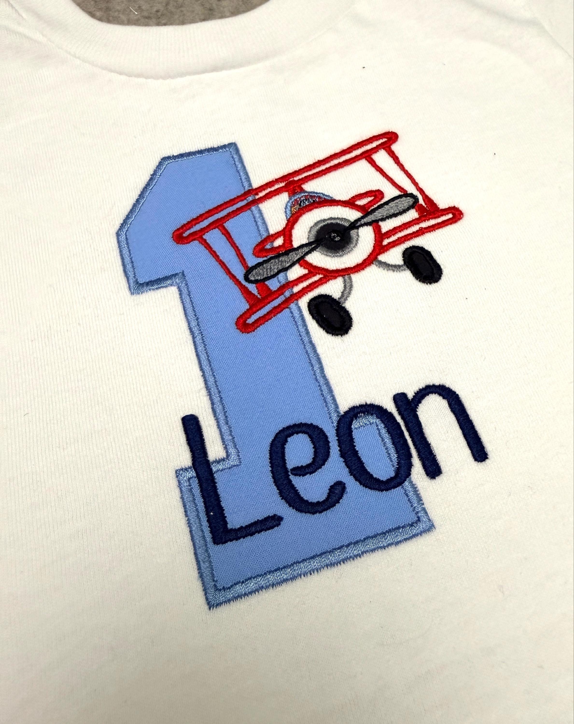Airplane number 1 ONE boy birthday number machine embroidery applique designs 4x4, 5x7, 6x10