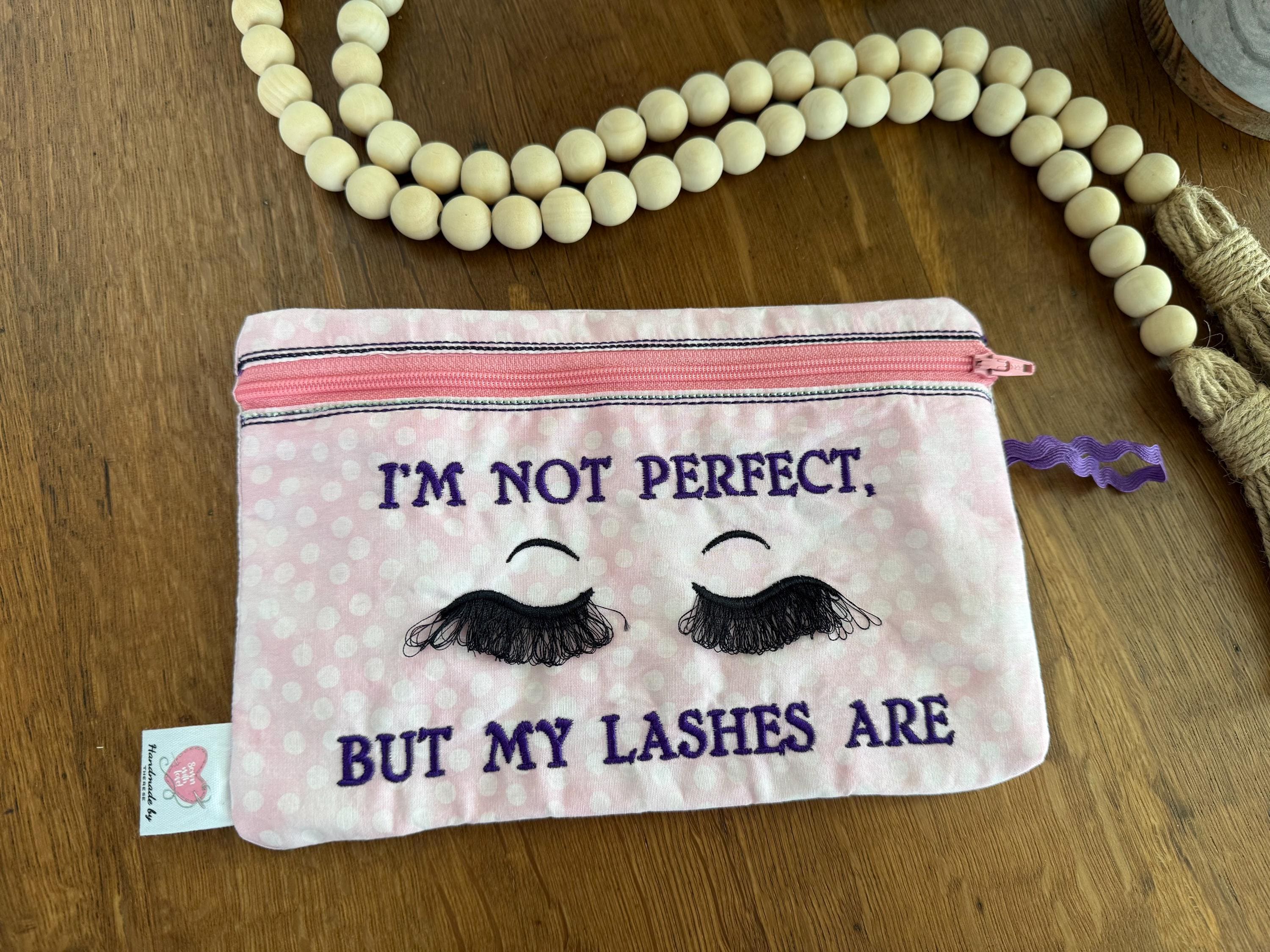 I am not perfect but my lashes are Makeup cosmetic Pouch, Pocket, ITH, bag, zip bag, In The Hoop Machine Embroidery designs In-The-Hoop