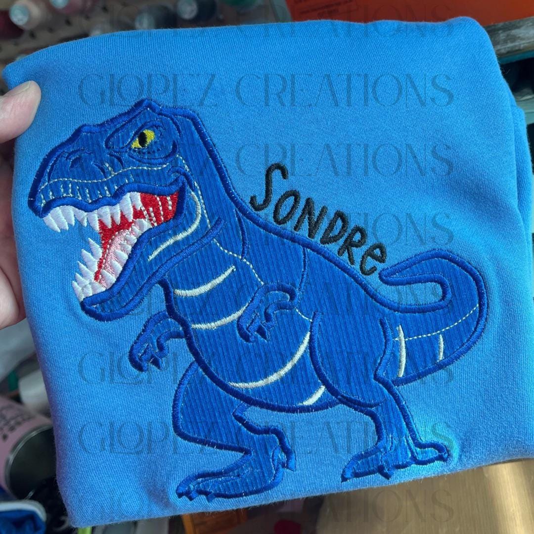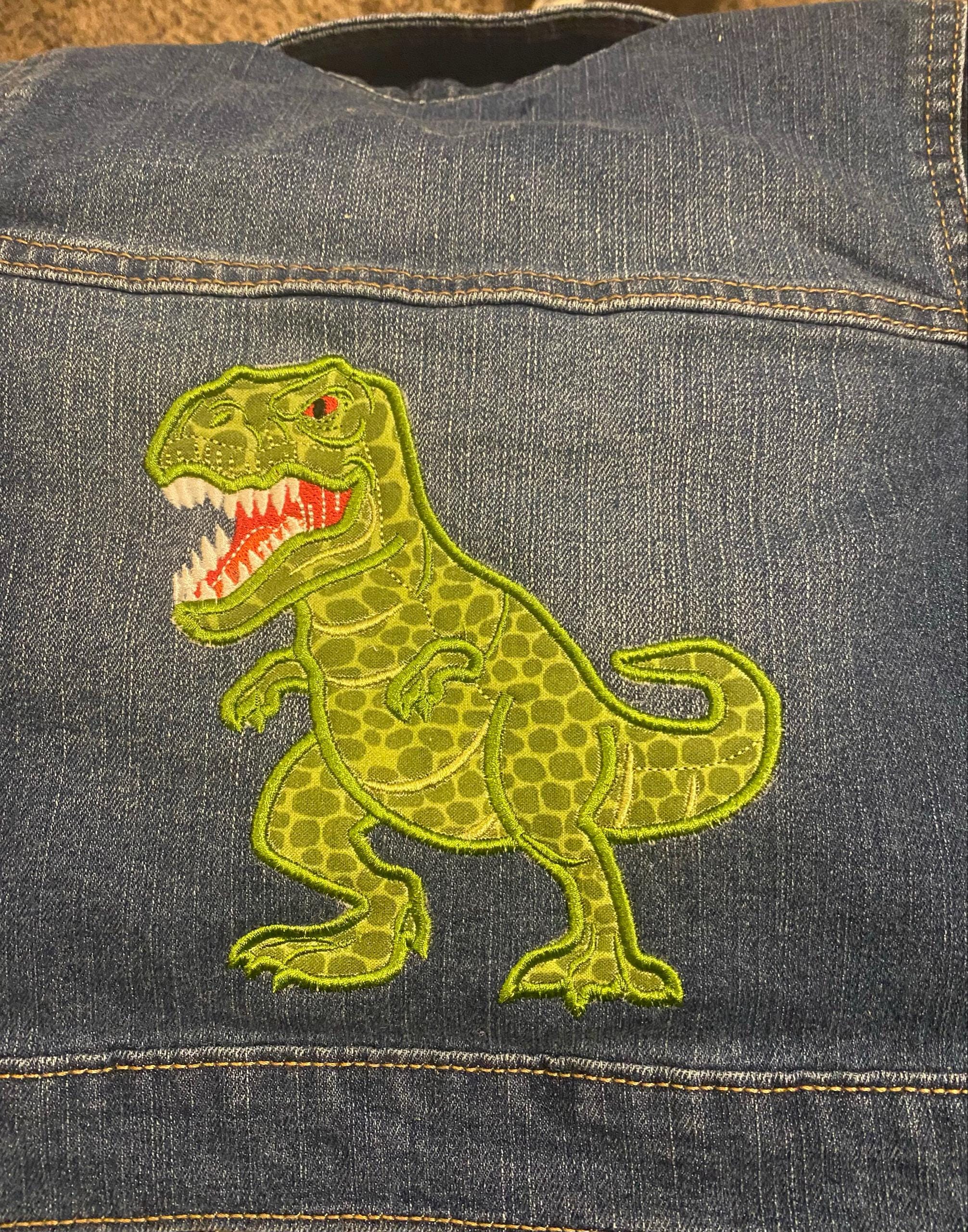 Realistic T-rex Dinosaur Applique machine embroidery designs in assorted sizes for hoop 4x4, 5x7, 6x10 kids baby boy outfit Jurassic World