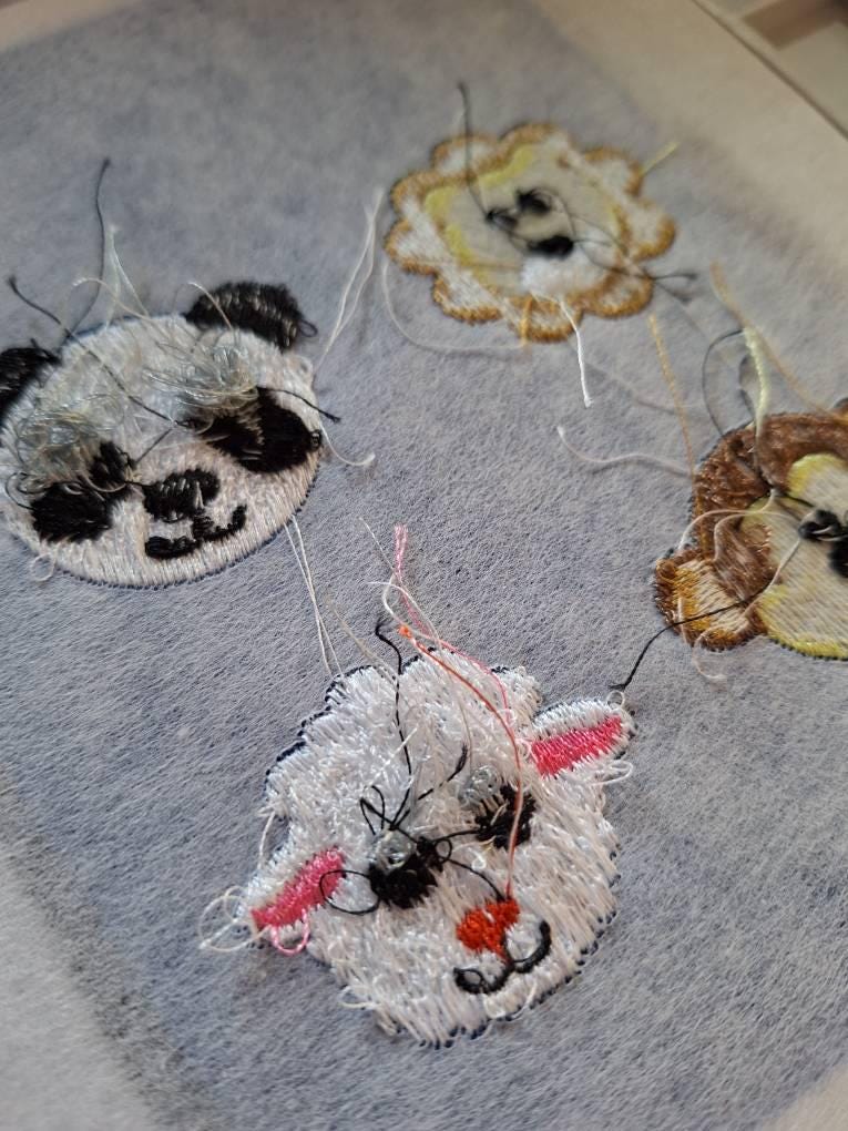 Every time I have had a problem with the panda and sheep designs. Have tried 5-6 times and they always go wrong at the near end points. There is far too much thread bunching underneath. There is far too much thread bunching up underneath around the eyes which disturbs my embroidery arm and then i cannot continue so need to start all over again. Its not a tension, me or machine problem as my machine has been serviced. Sadly I'll not continue with these.