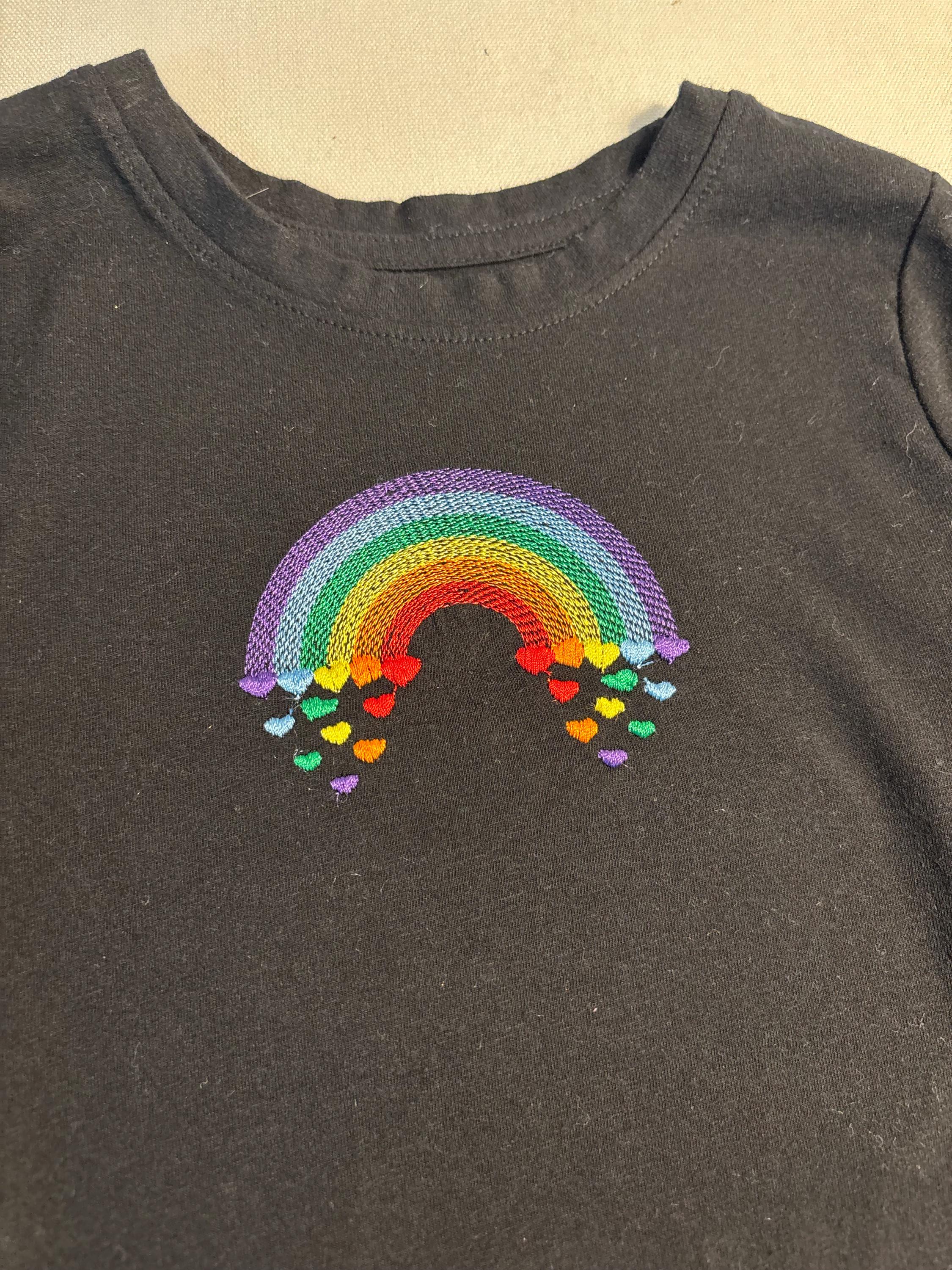 Light stitching light stitch rainbow in many sizes, Rainbow falling hearts machine embroidery designs from 2 to 8 inches kids baby outfit