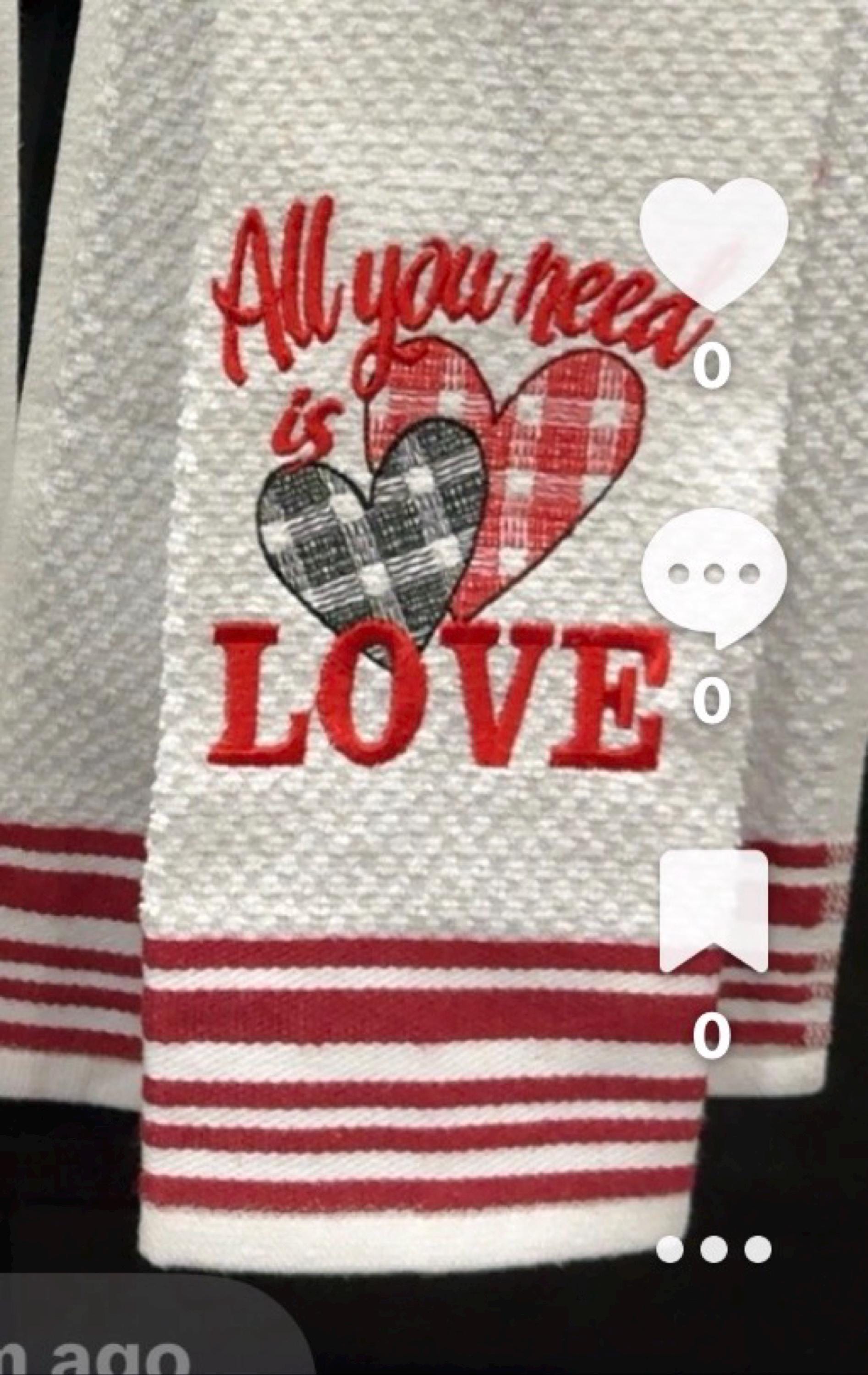 All you need is love Kitchen towel embroidery, gingham buffalo plaid tartan machine embroidery designs valentine love sayings quotes hearts